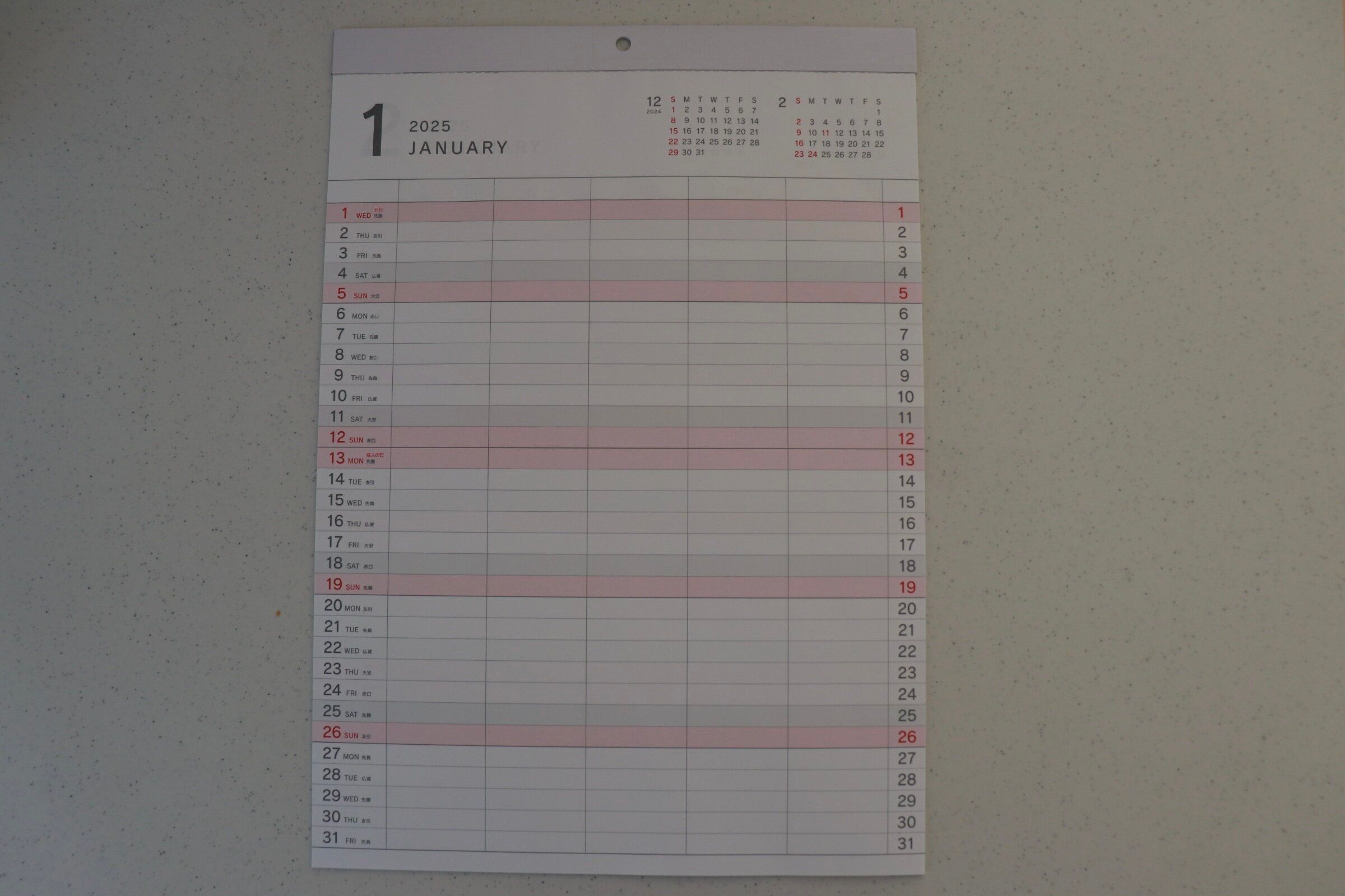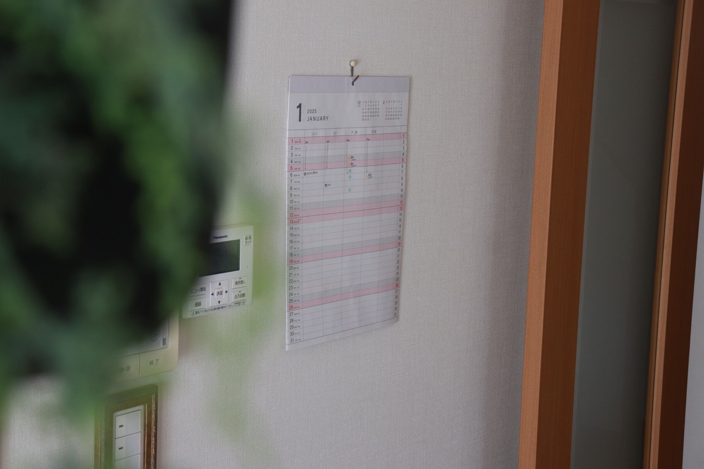 このシンプルなデザインなのも選んでいるポイント。カレンダー売り場でみるとデザインの入っているかわいいものを選びがちですが、文字を書いていくことも考えるとシンプルなほうがやはりインテリアは損なわずにすみます。