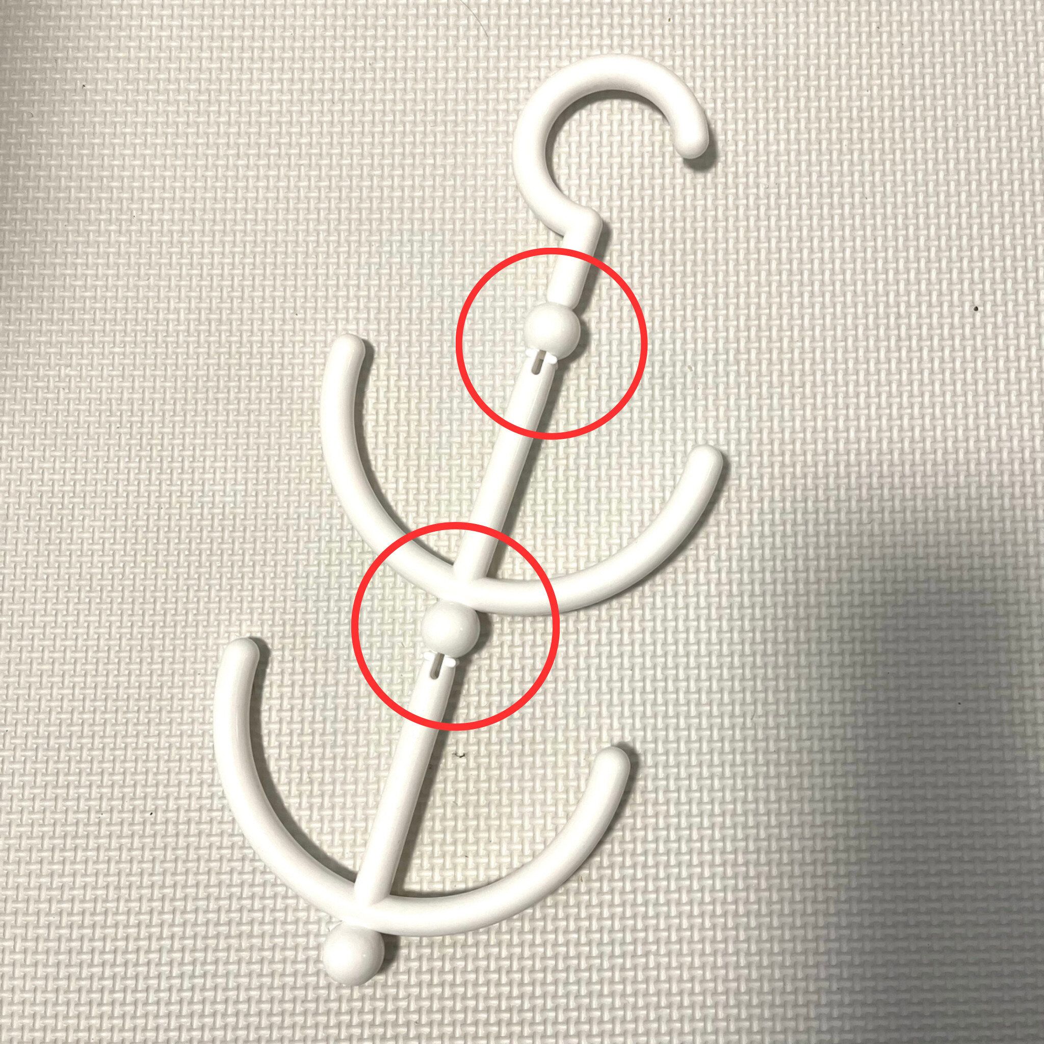 しかし、大きな靴をこのシューズフックで二足同時に干してしまうと、靴同士が重なってしまいます。