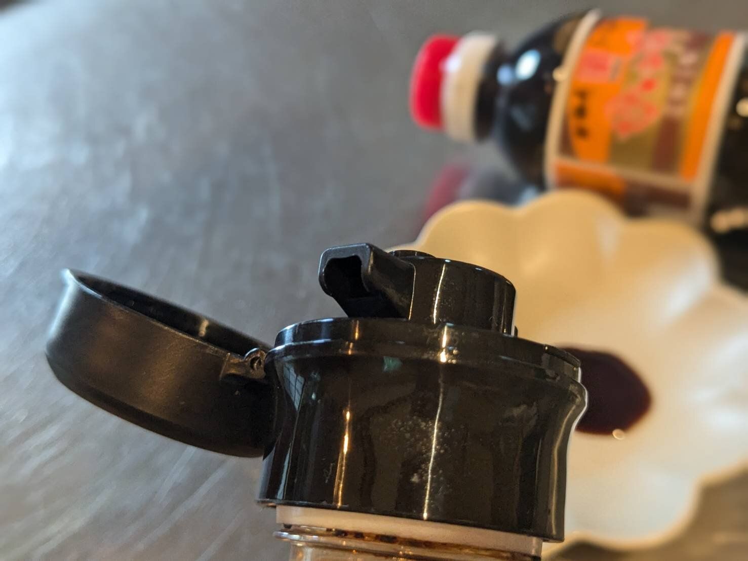 よく言われることですが、醤油さしの液だれ問題は「値段」ではありません。高い醤油さしであっても液だれするものがあるのも事実!その点、このダイソーのキャップは液だれ知らず!傾けていたボトルを垂直に戻すと、ピタッと止まってくれます。