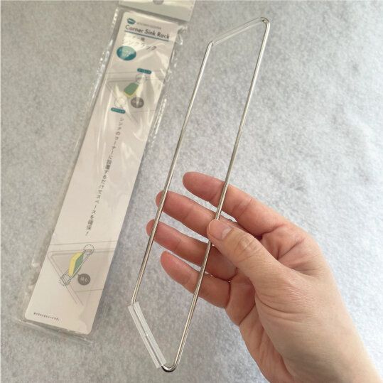 じつは、今まで使っていたスポンジラックは蛇口に引っかけたり、シンクの下のほうだったので食器や手を洗うたびに水がスポンジにかかるのが悩みだったんです。けれど、このシンクラックはバシャバシャ水がかかる心配もなくスポンジが浮くので水切りしやすくなって衛生的になりそうです。