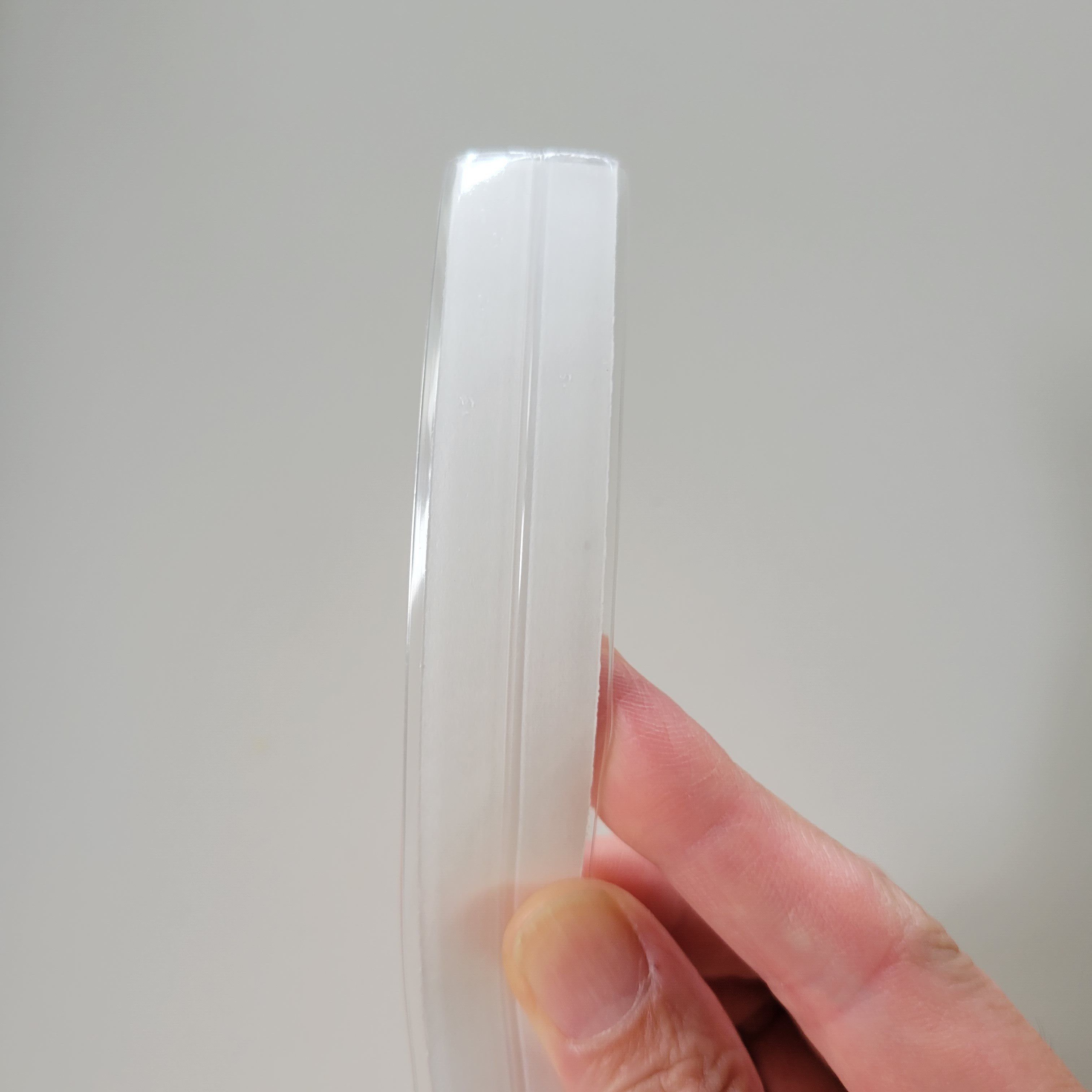 しっかり厚みがあり透明で、真ん中に折り目が入っているようなテープは見たことがなかったので、思わず衝動買いしてしまったこの商品。