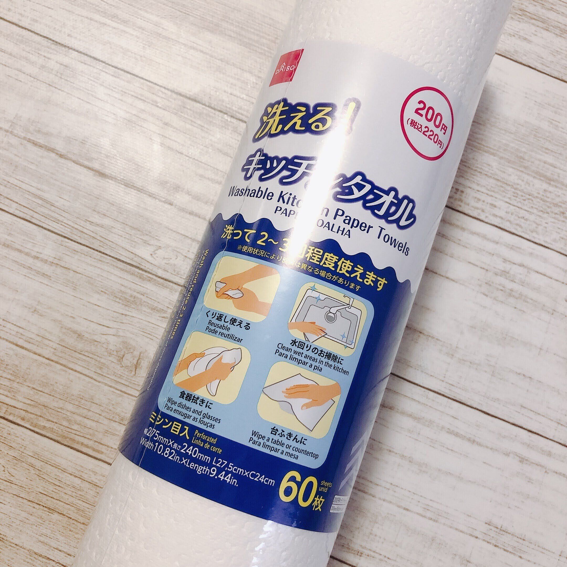 なにか良いものはないかな?と思っていた時に出会ったのがダイソーの「洗えるキッチンタオル」です。