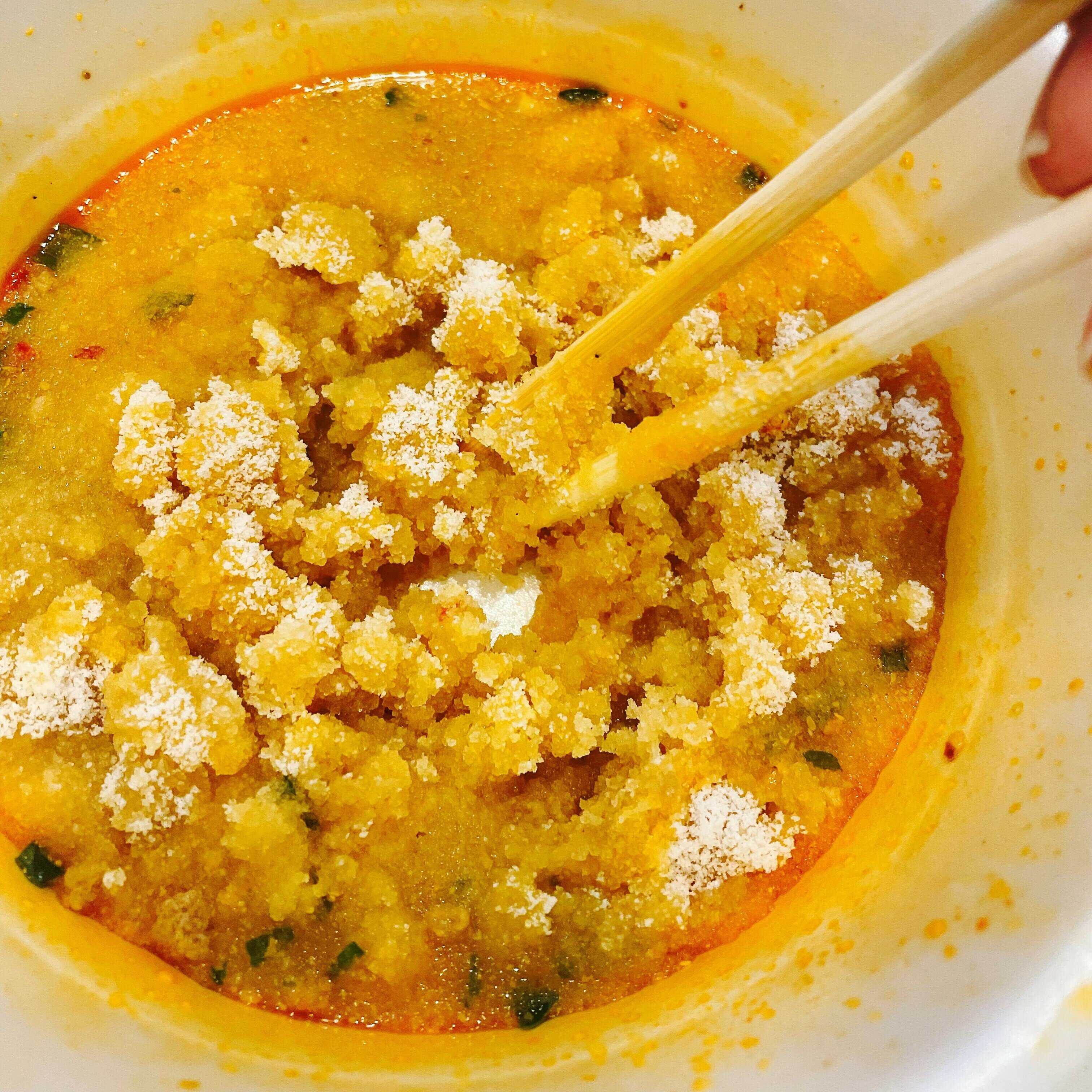 ラーメンの残り汁をしっかり固めてくれています。