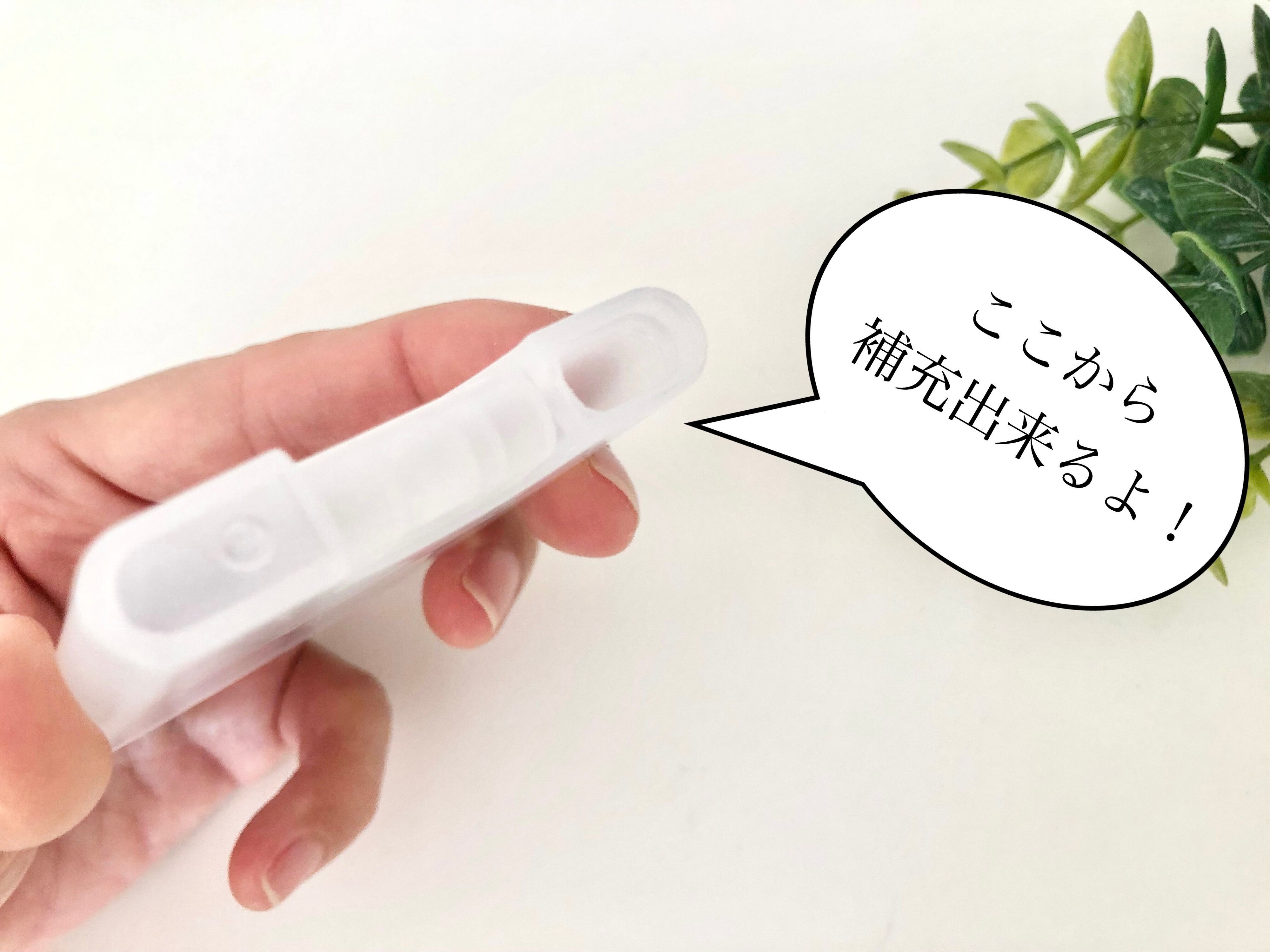 使い方は上部にキャプがついているので、そこから除菌アルコール液を入れます。