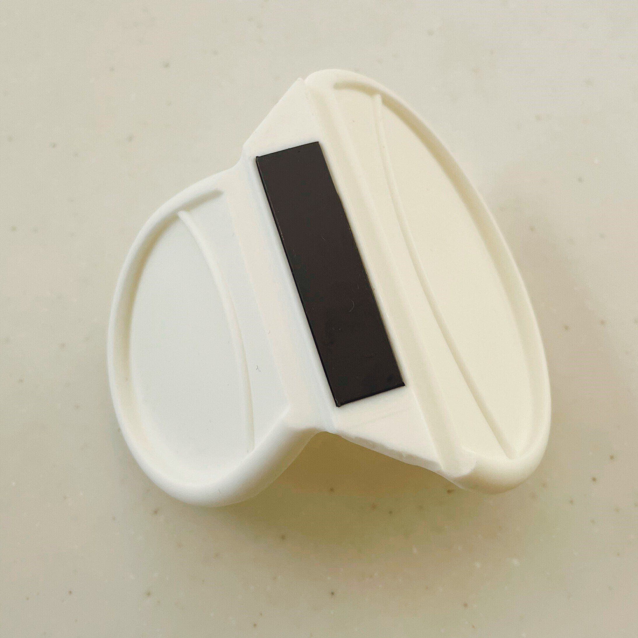 大小の半円が根本でつながってV字の形状になっていてシリコンのようなゴム製。