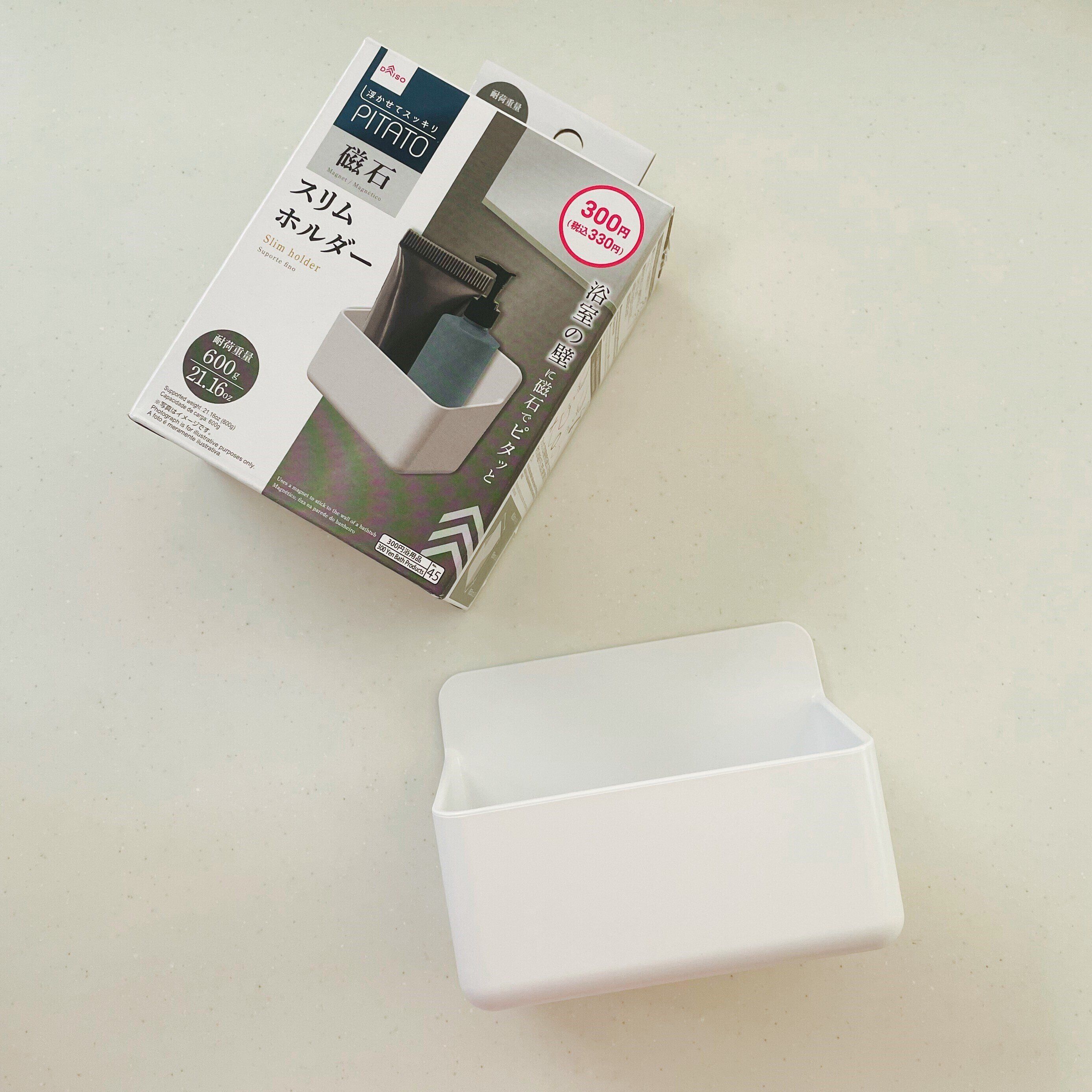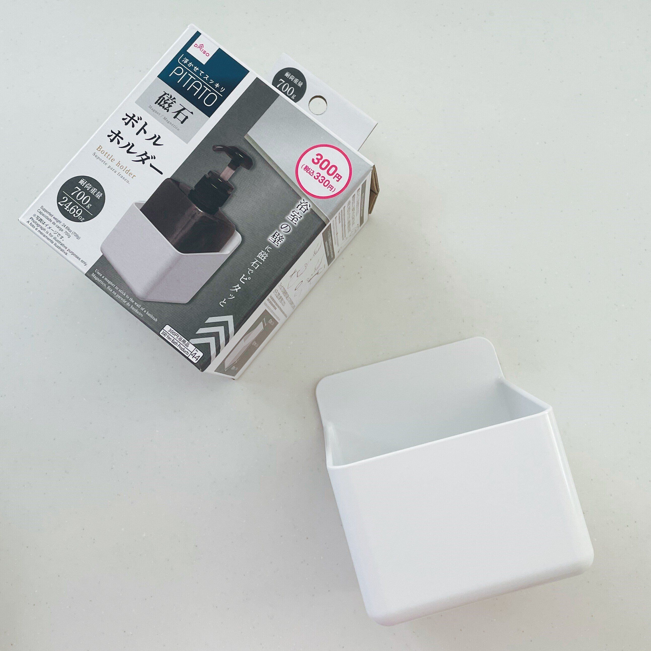 100円ショップをパトロールしていて見つけた商品。バス用マグネットで浴室に張り付きボトルを収納できます。