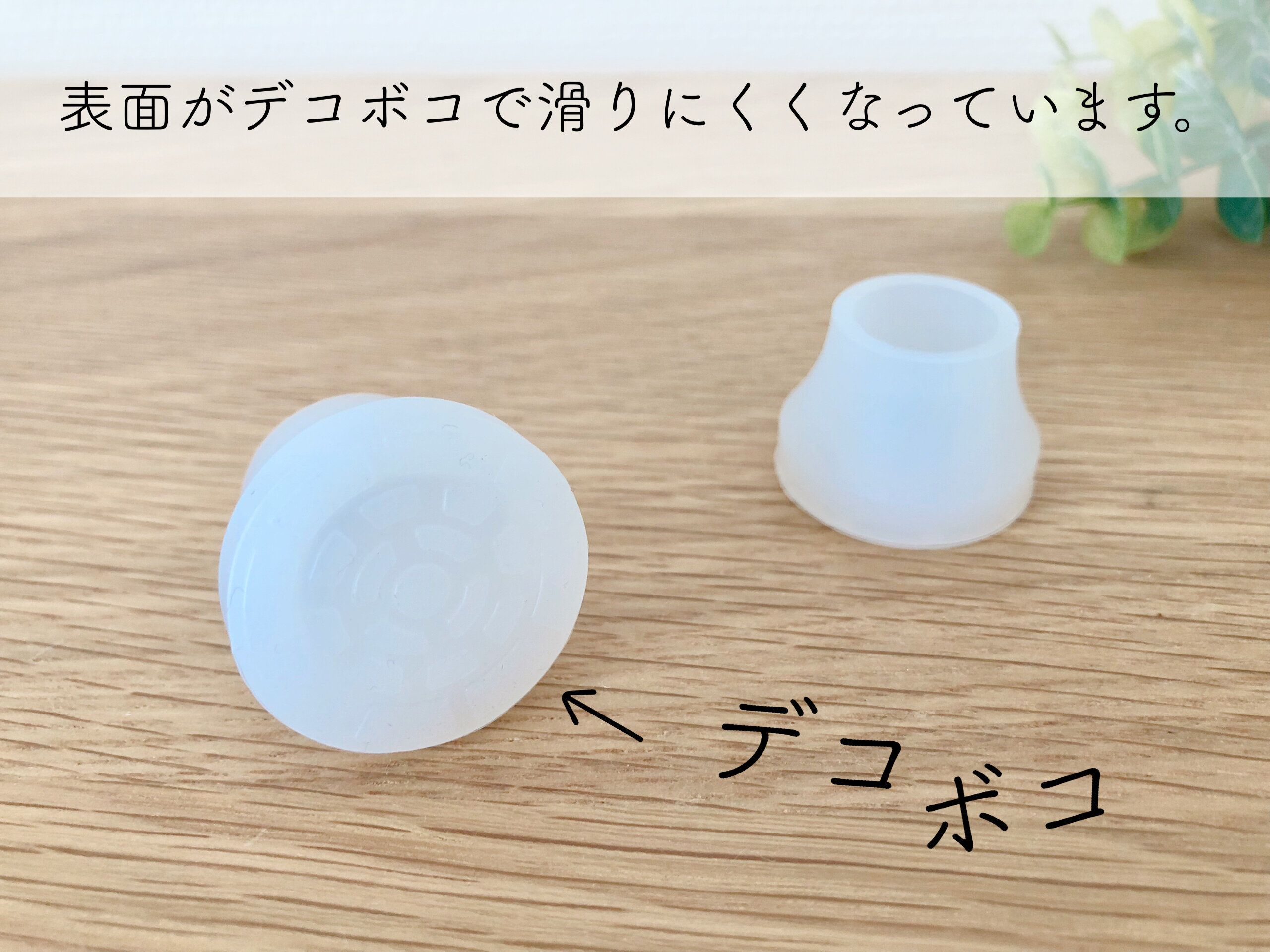 つっぱり棒に付けるだけで大丈夫?と思いそうですが、この「つっぱり棒用シリコンキャップカバー」は表面がデコボコしていて、滑りにくくなっています。