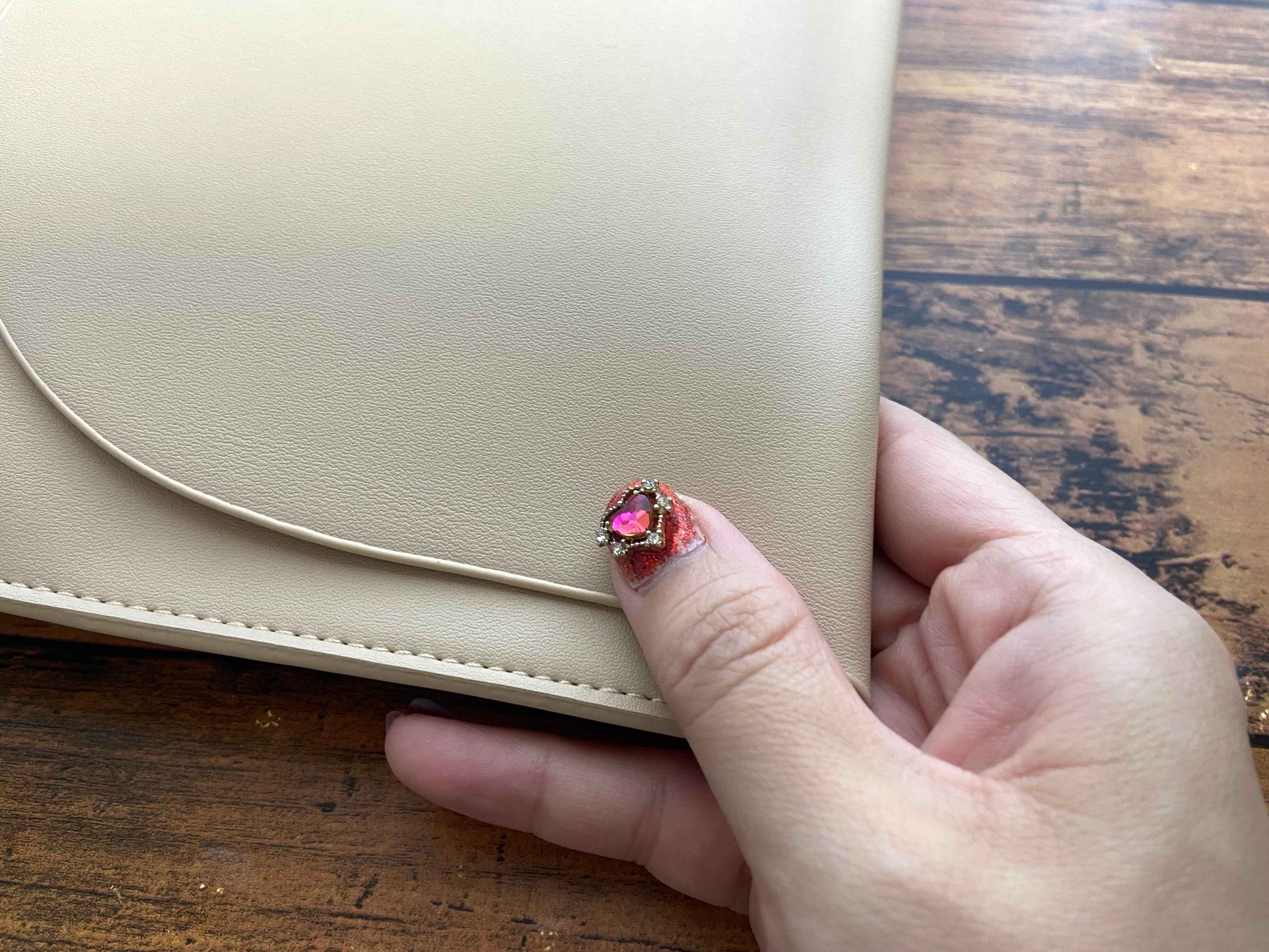 ケースの素材は合皮なので高見え!カラーは3COINSらしいベージュで使用する人を選ばないデザインです。1つ1つ丁寧に縫い合わせられているのに1,100円というプチプライスには驚き!