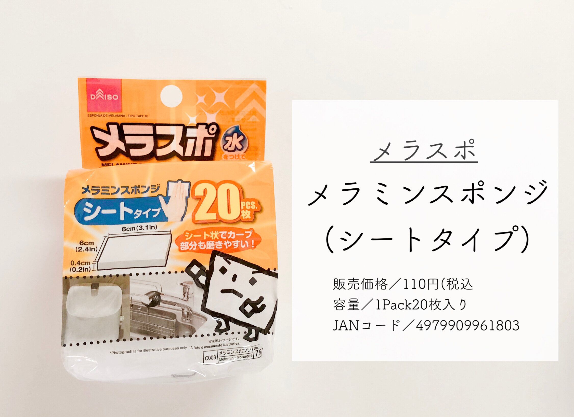 ダイソーの「メラミンスポンジ(シートタイプ)」はキューブタイプより使いやすいし、かさばらないから収納にも便利!