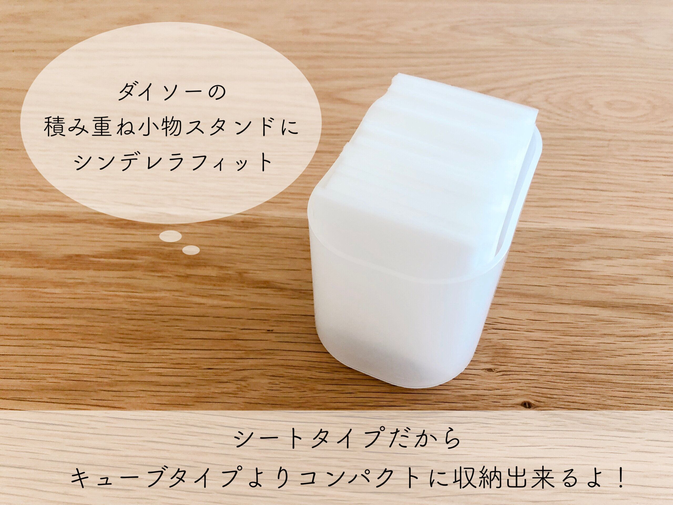 私はちょうどシンデレラフィットした、ダイソーの「積み重ね小物スタンド」に入れています。