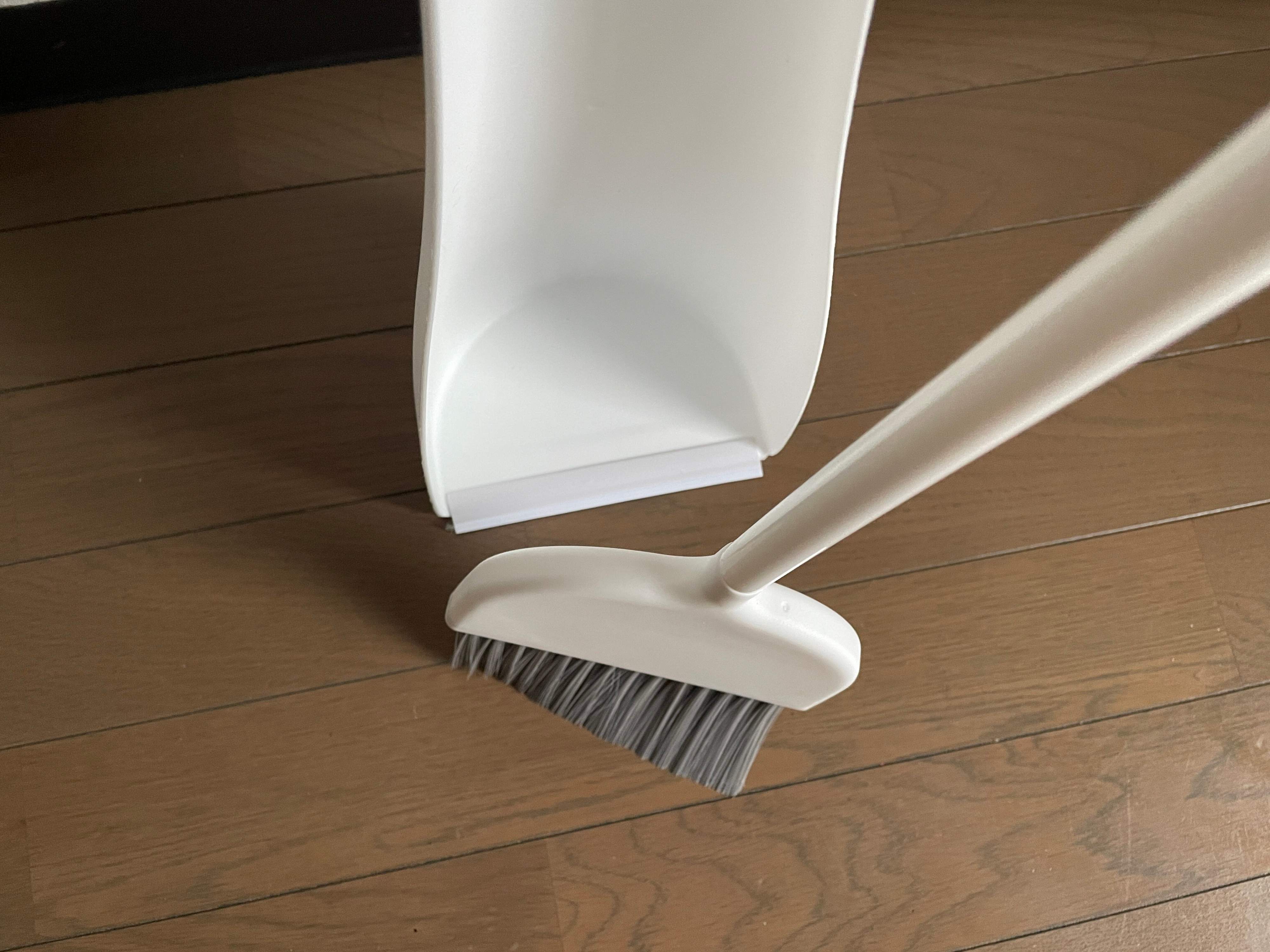 ほうきの先はよくしなり掃きやすく、ちりとりの先にもゴムが付いていて、ゴミがきちんと集められます。ほうきとちりとりとしての機能もバッチリですよ。安心して使えます。