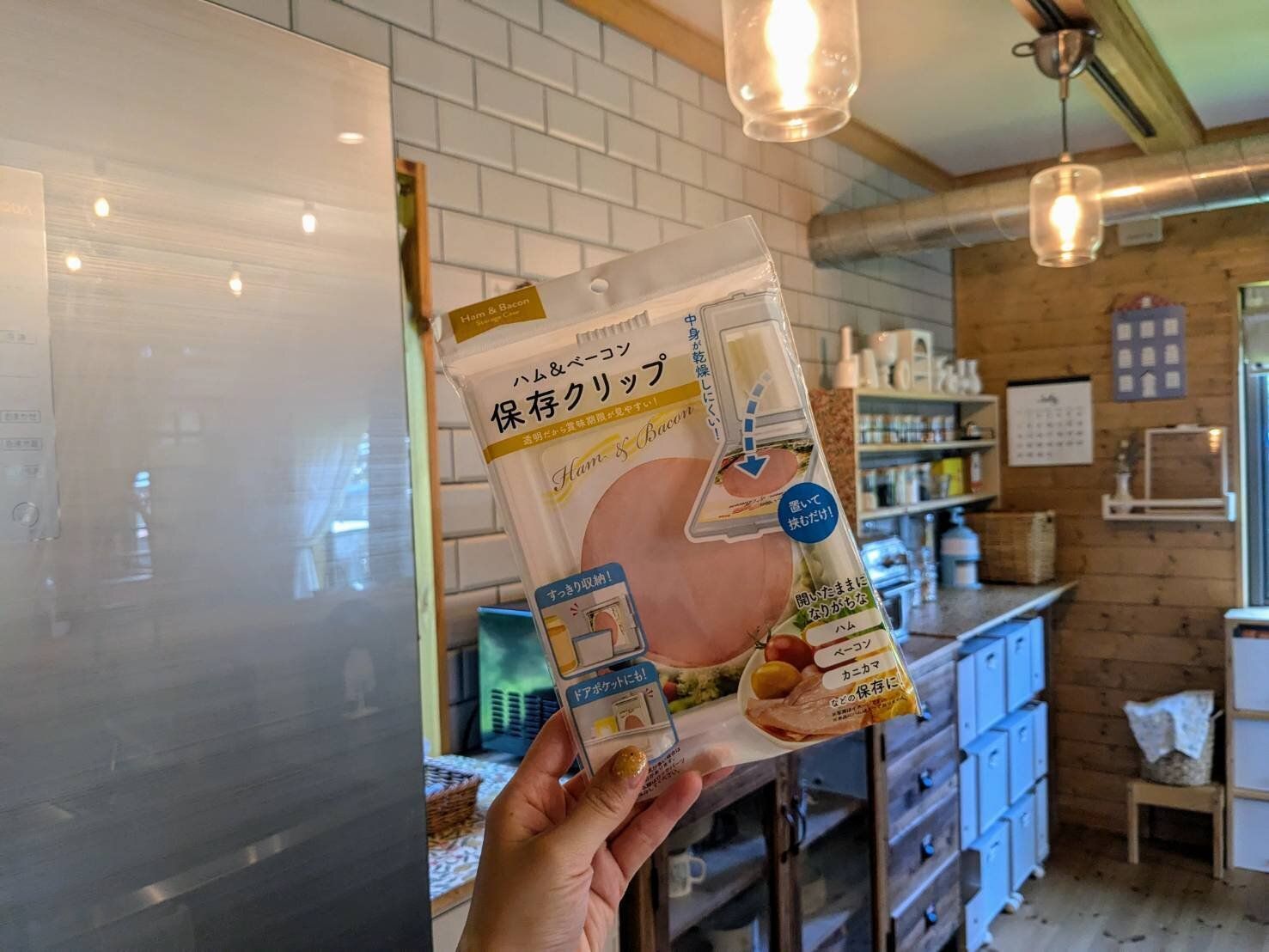使い方は至って簡単。食品の開封口を手前に置いて、保存クリップで挟むだけでOK!今まで再利用することもできずに使い捨てていたラップが不要になっただけでなく、冷蔵庫にハムやベーコンを戻すスピードが圧倒的に早くなりましたよ。