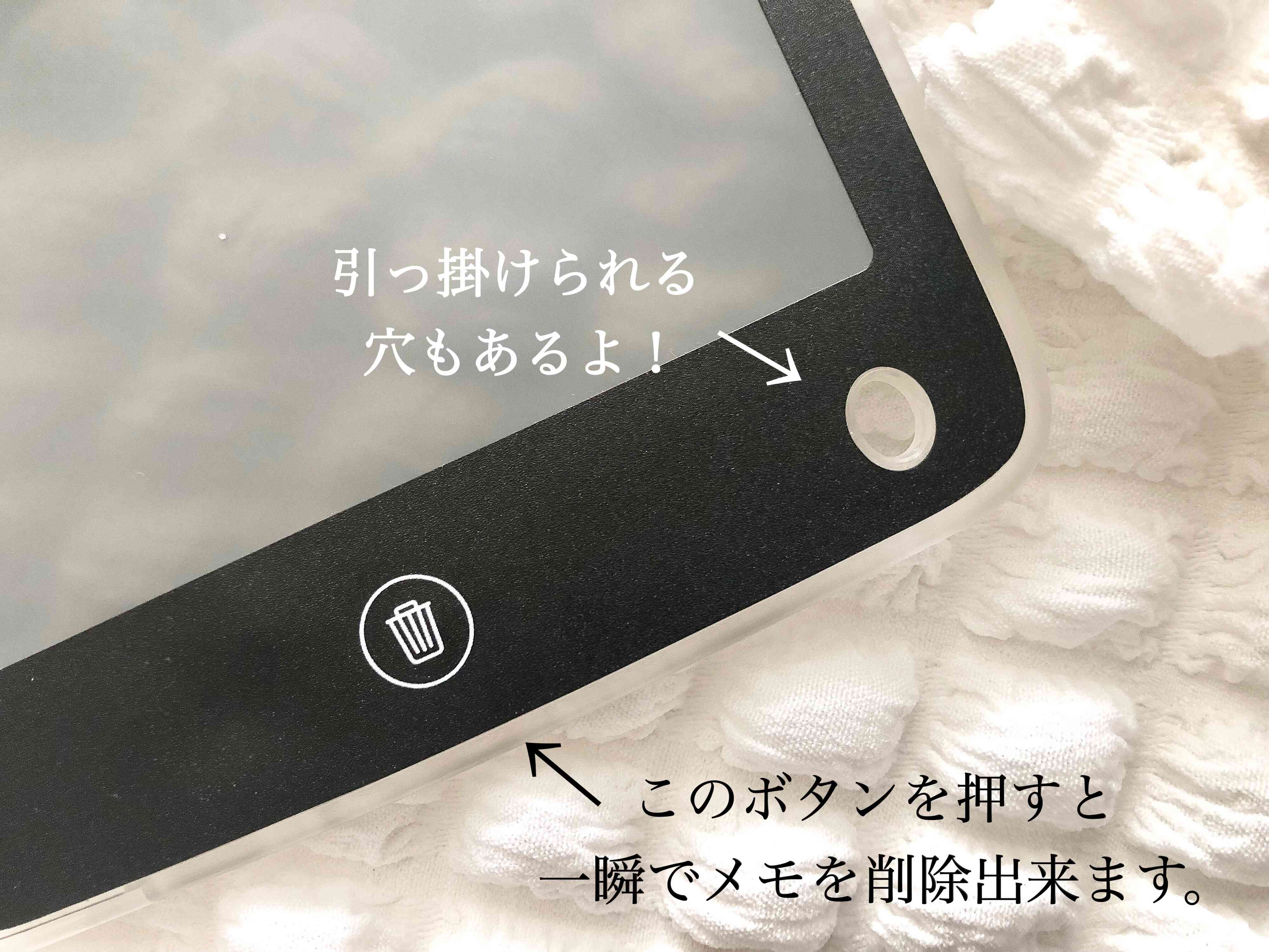 さらに消したくないメモなどは、裏側のロックボタンでロックすれば消えないように保存することもできるんですよ。