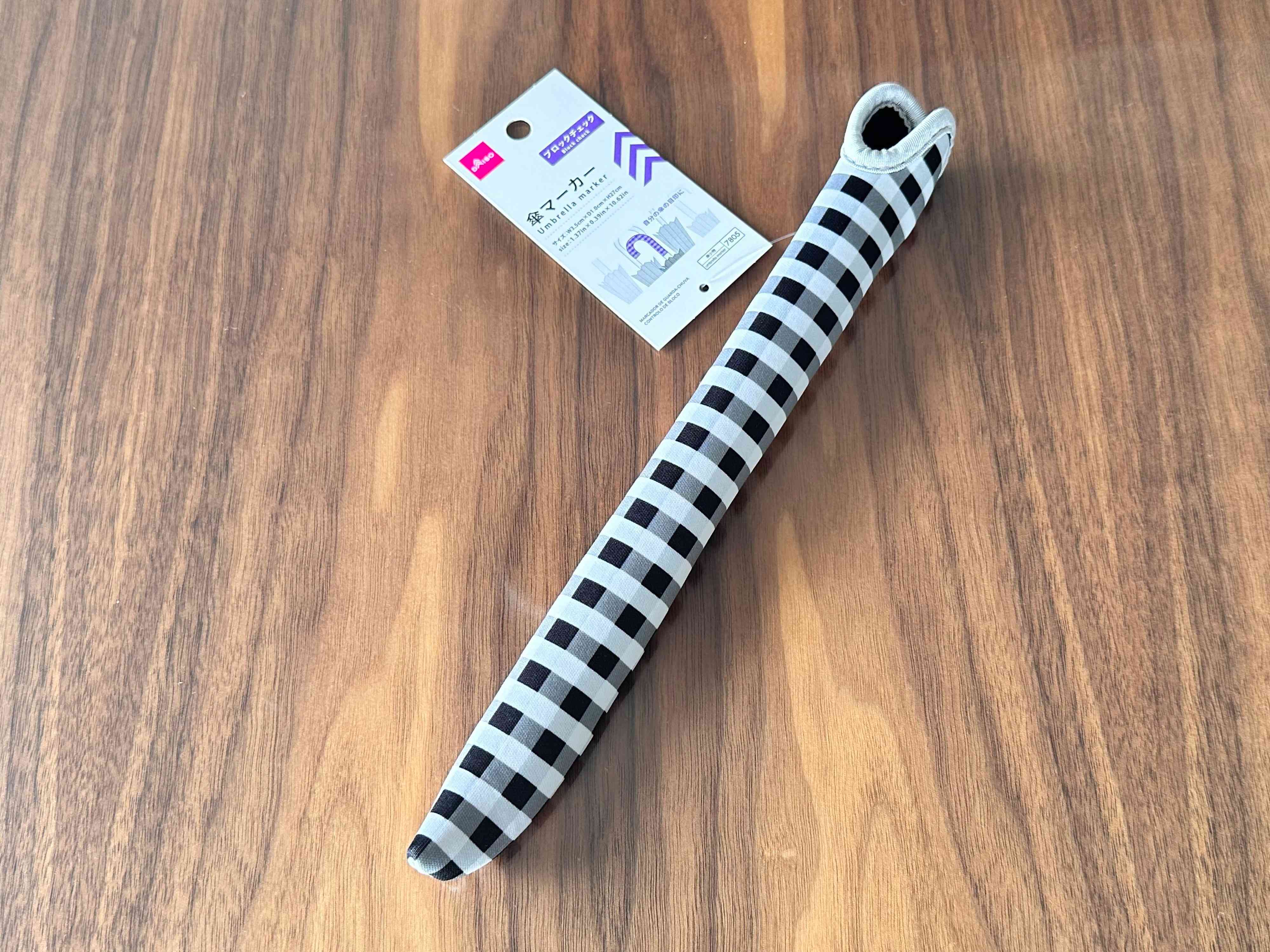 商品はダイソー商品の『傘マーカーブロックチェック』になります。価格は110円。JANコード:4550480357805。
