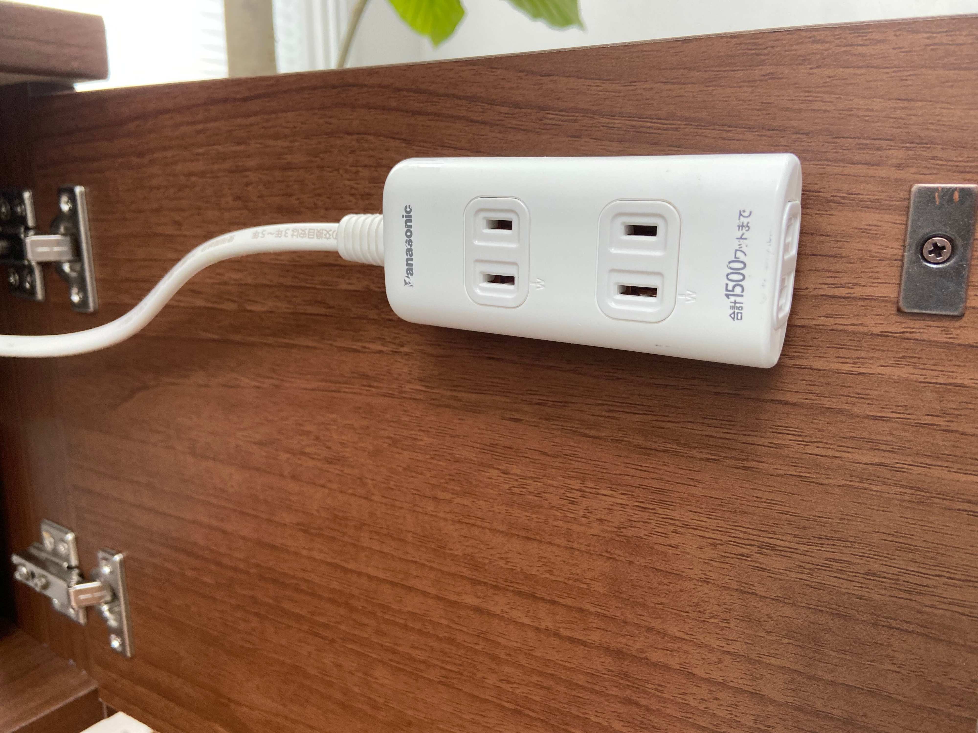 これがあれば家電を使用しないときもコンセントが床に置かれた状態にならないので、お掃除の時にも除ける必要が無くなりますし、見た目にもすっきりして便利ですね。