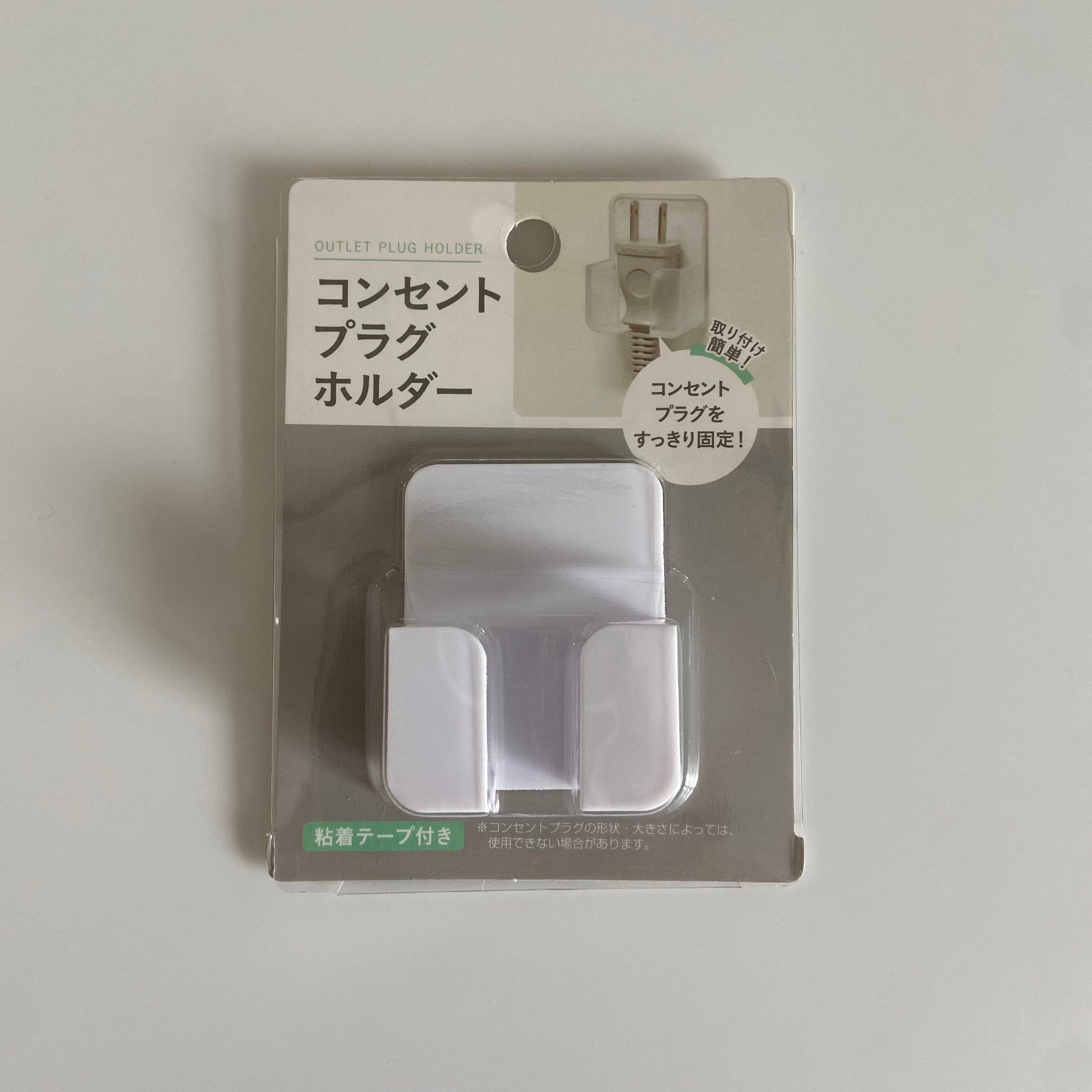 こちらはセリアで購入した「コンセントプラグホルダー」。名前の通りコンセントプラグをひっかけて置けるホルダーです。