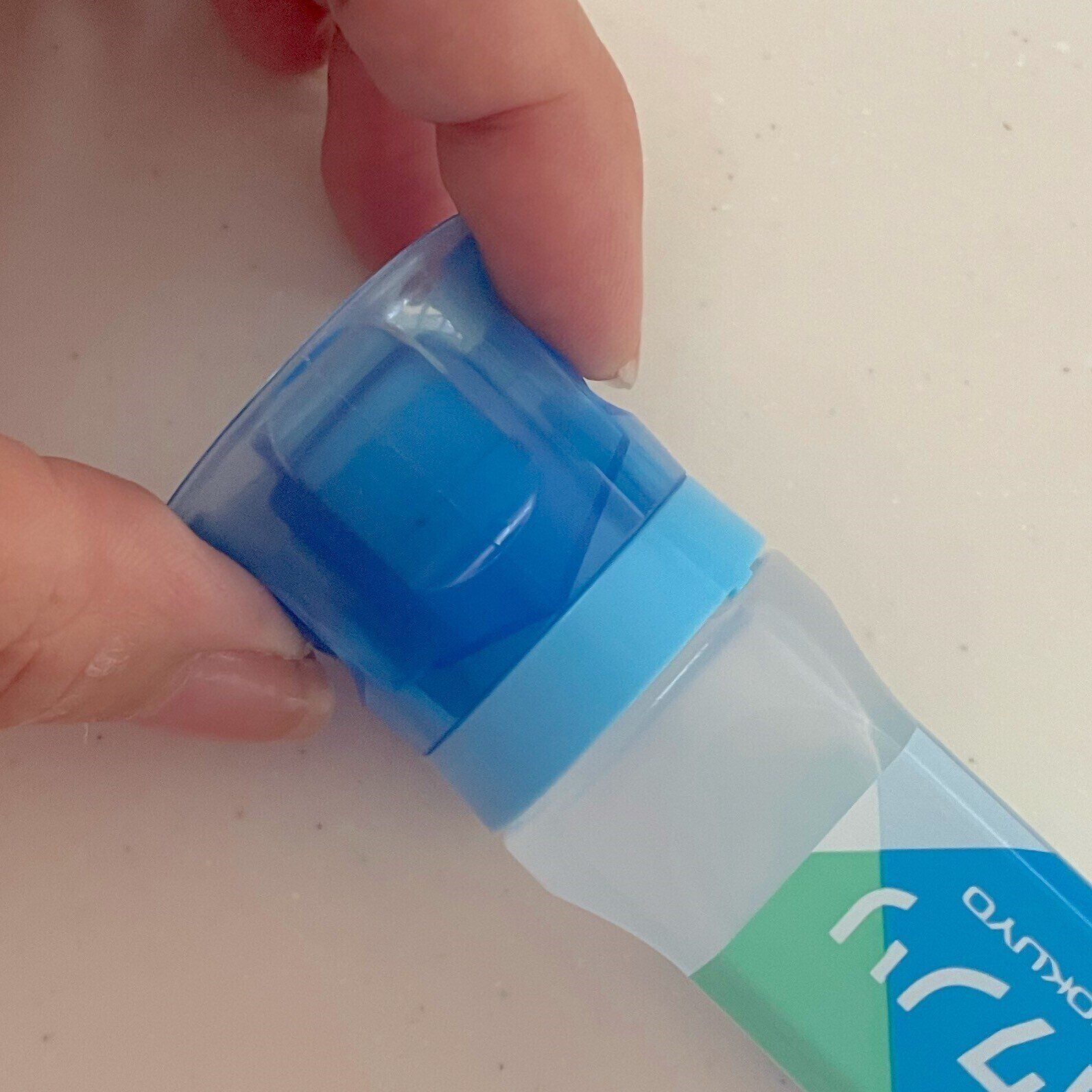 パチンっと音がしてフタが外れます!液体のりのフタってのりが染み出す部分を乾燥させないためにフタを回して開け閉めしますが、こちらののりはワンプッシュで開閉します。