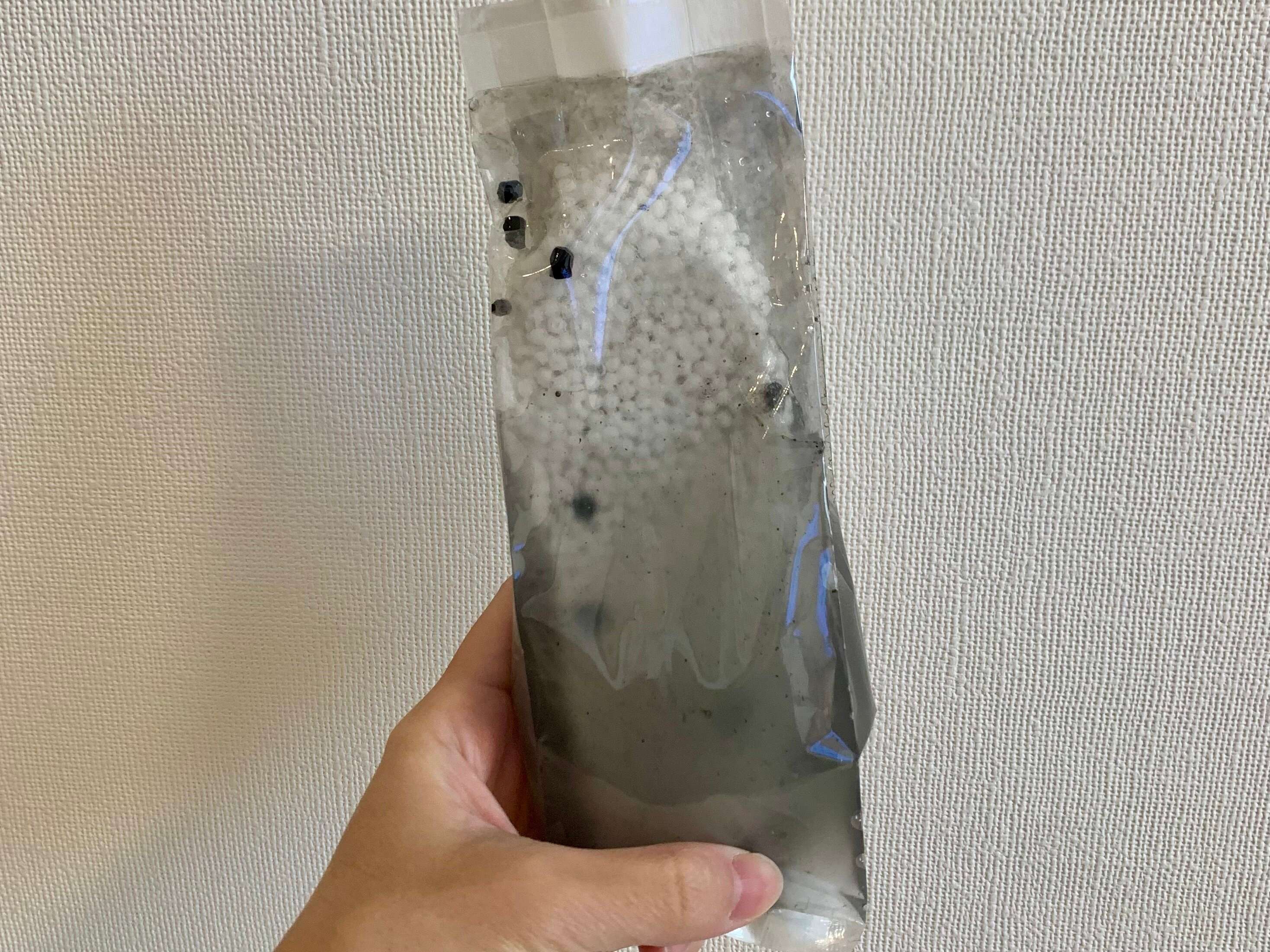 約3ヶ月間下駄箱に置いてみて、写真ぐらいの水分が取れていました。