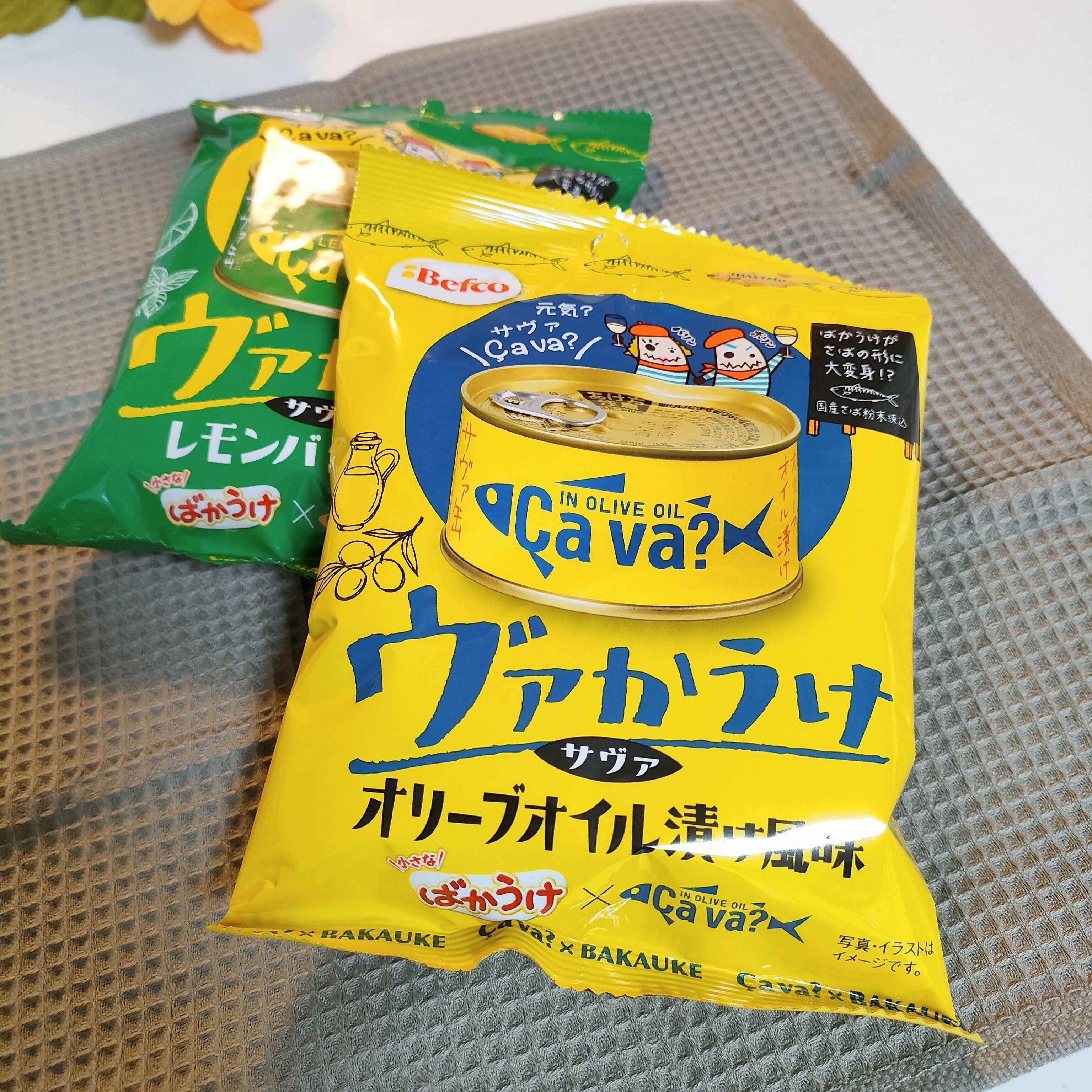 鯖缶ブームを起こしたといわれる「CAVA?」の缶詰と、有名お菓子のばかうけがコラボしたもの。