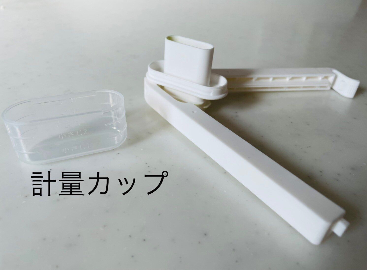 計量タイプのおすすめポイントは、小さじ1、2杯、大さじ1杯を計量できる計量カップつきです。