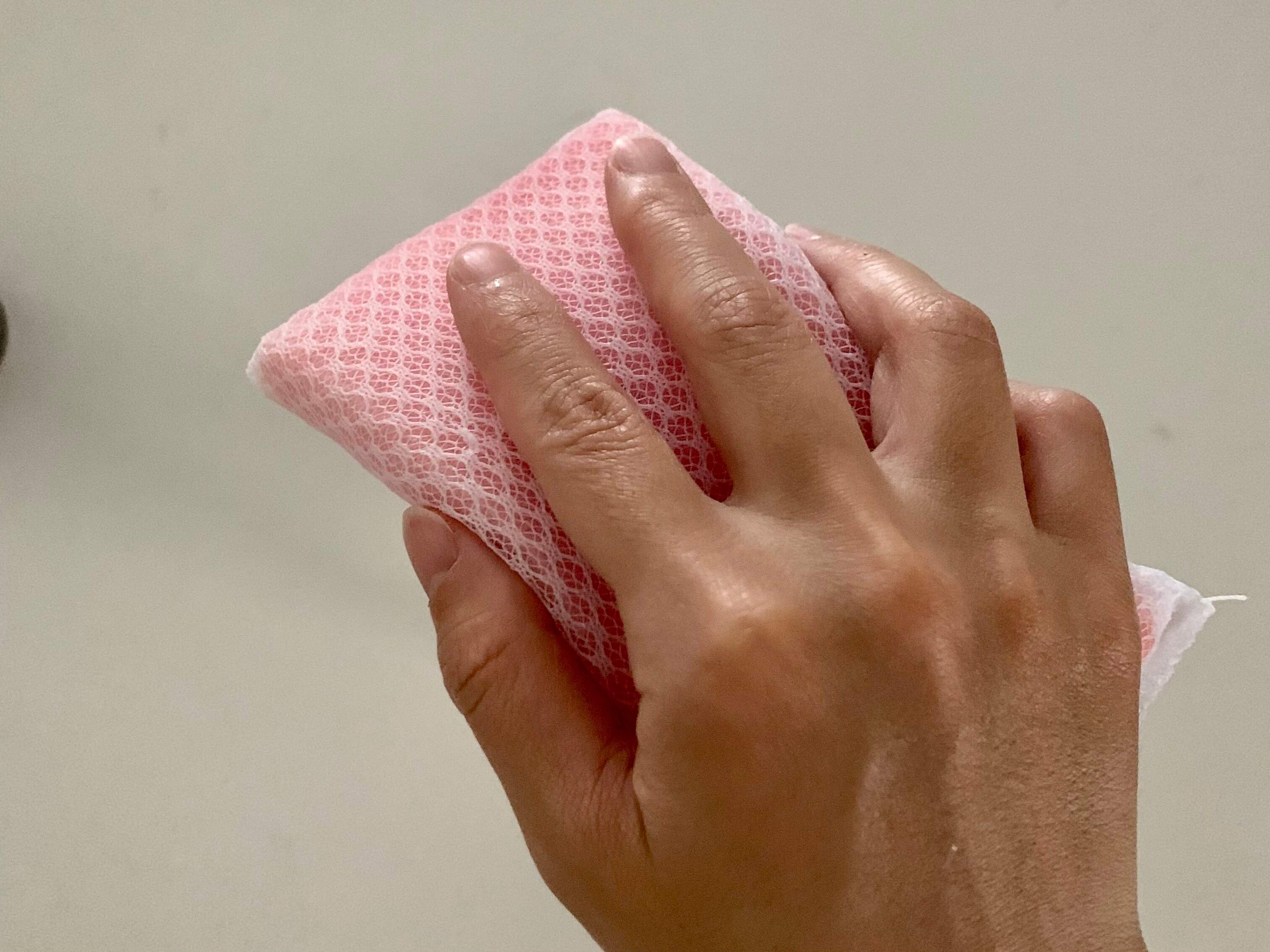 3COINSの食器用洗剤ボトルは片手でスポンジに洗剤を付けることができます。