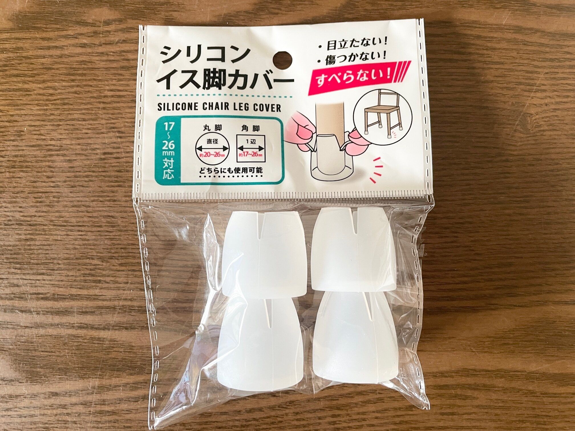 ご紹介するのは、ワッツの「シリコンイス脚カバー」です。イス一脚分の4個入りで110円。