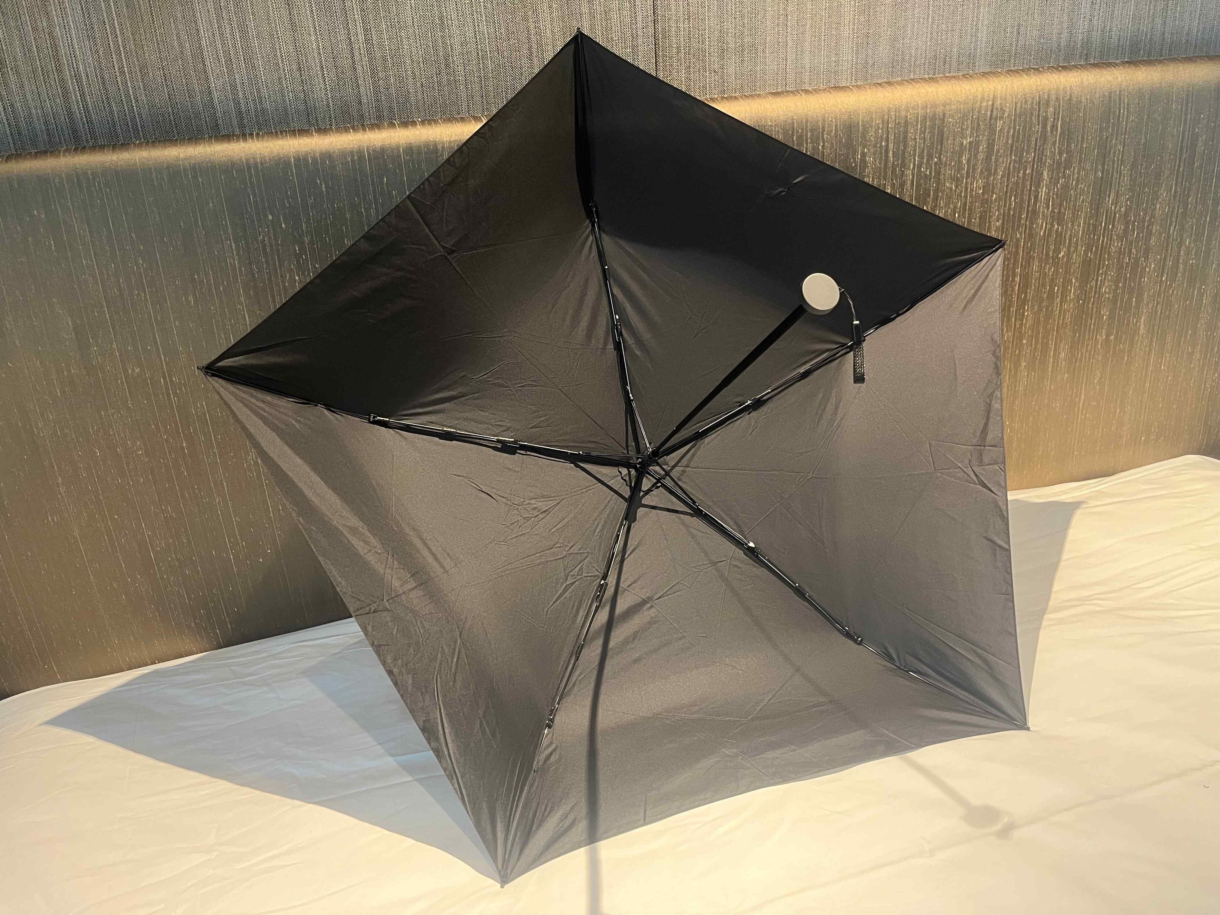 商品タグには「風が吹いても折れにくい」と表記があります。広げて骨組みを見ても、安っぽさや脆さは感じられません。そして、3段式タイプ。閉じた後はスムーズに畳めるので、ストレスも感じません。