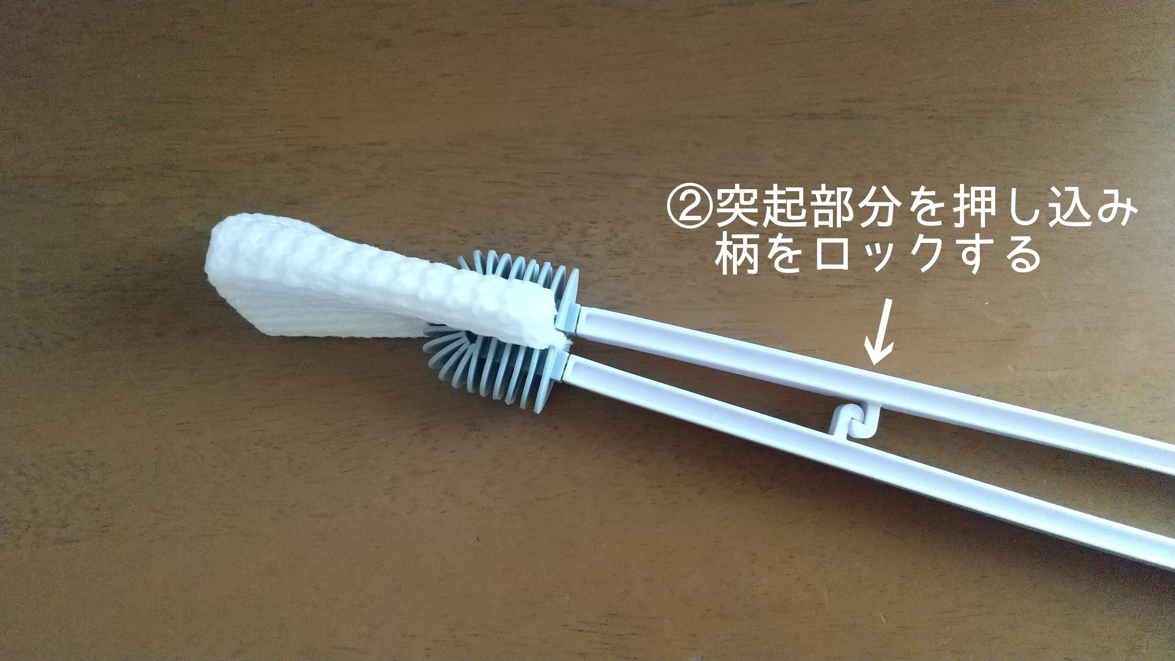 お掃除が終わったら柄をずらしてロックを外します。