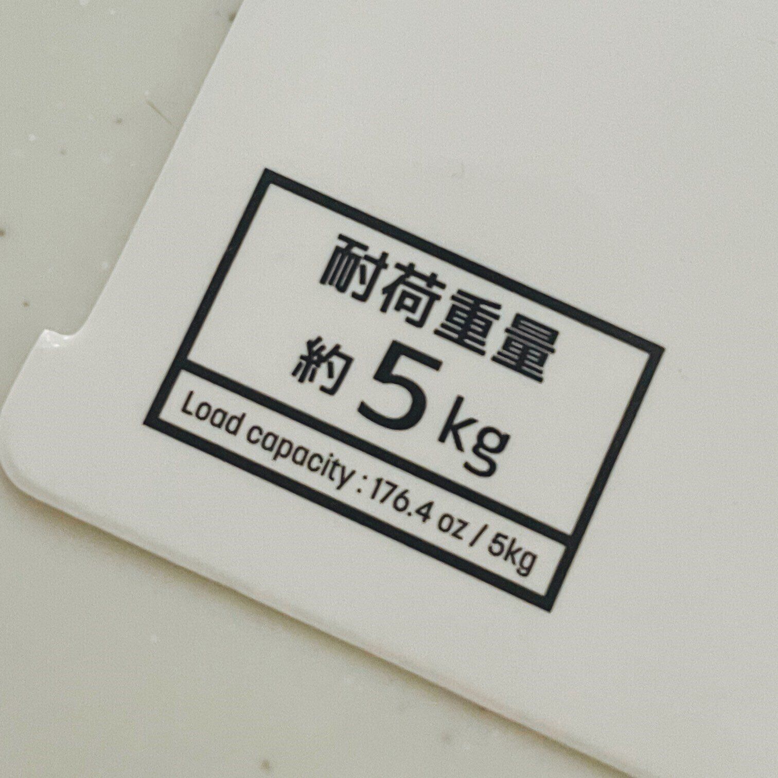 実はこのフックの購入ポイントは驚異の耐荷重量!何と5kgまで吊り下げできるんですよ。