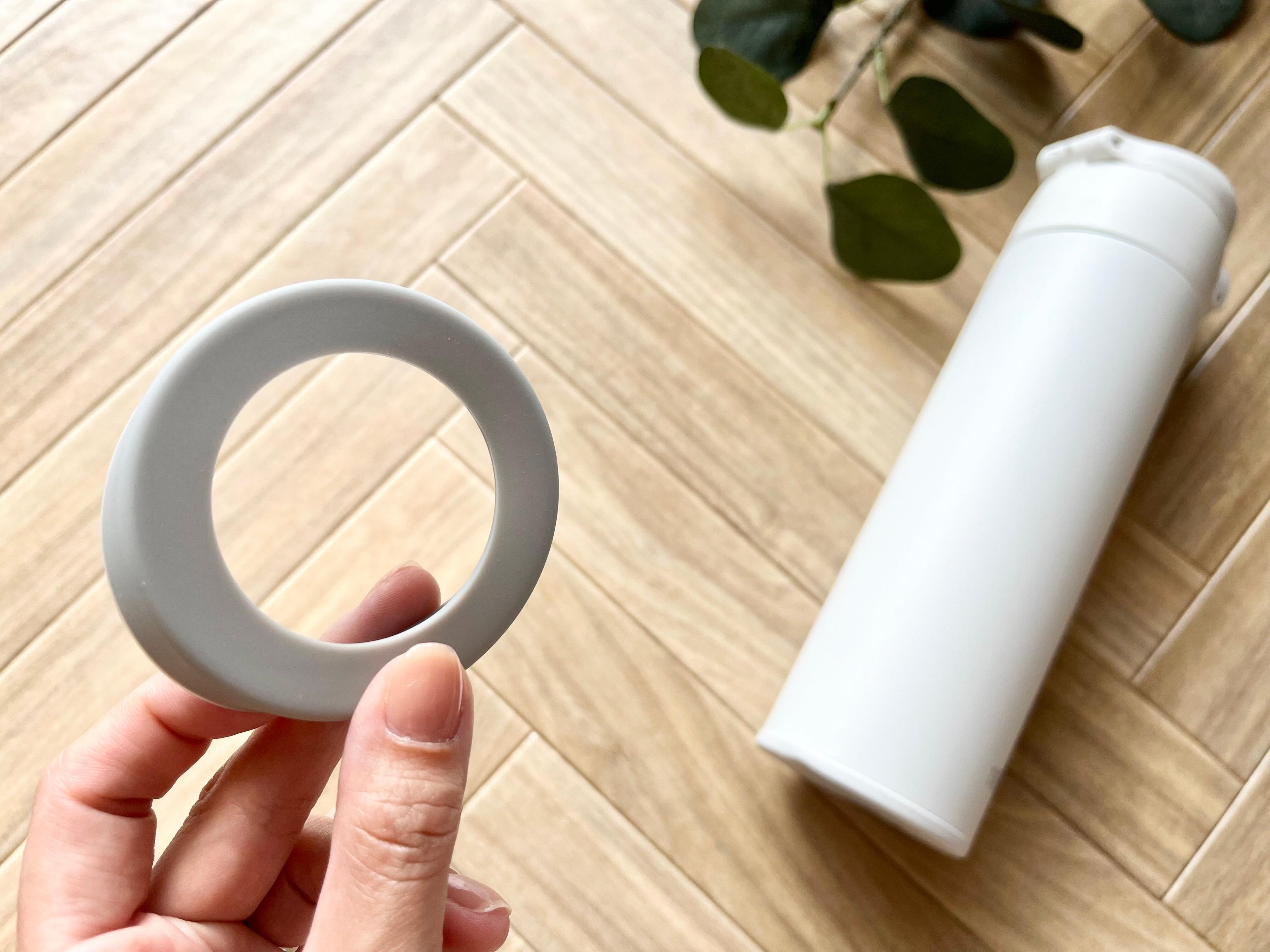 たったコレだけ、シリコーンが衝撃を吸収してくれるので、水筒やタンブラーの底を傷や衝撃から守ることができるんですよ。