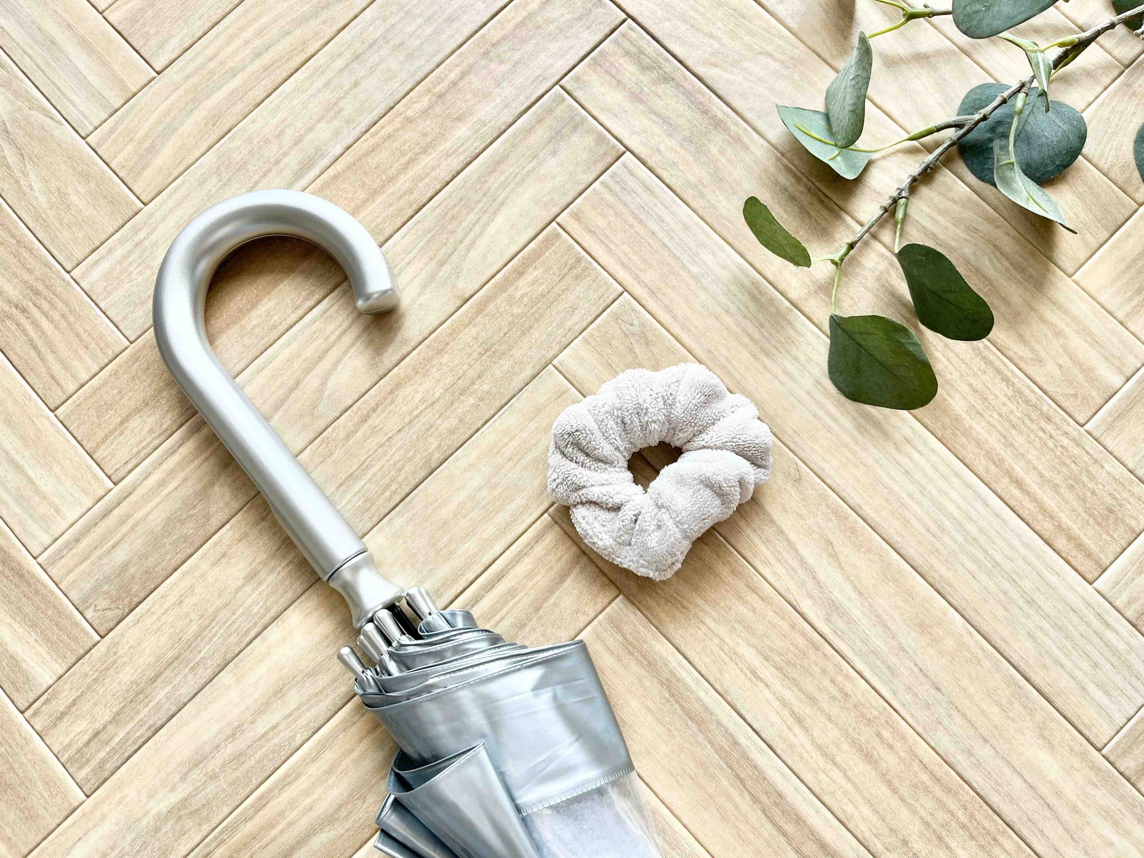 そんな悩みを解決してくるのが、セリアの「傘用吸水シュシュ」なんです。