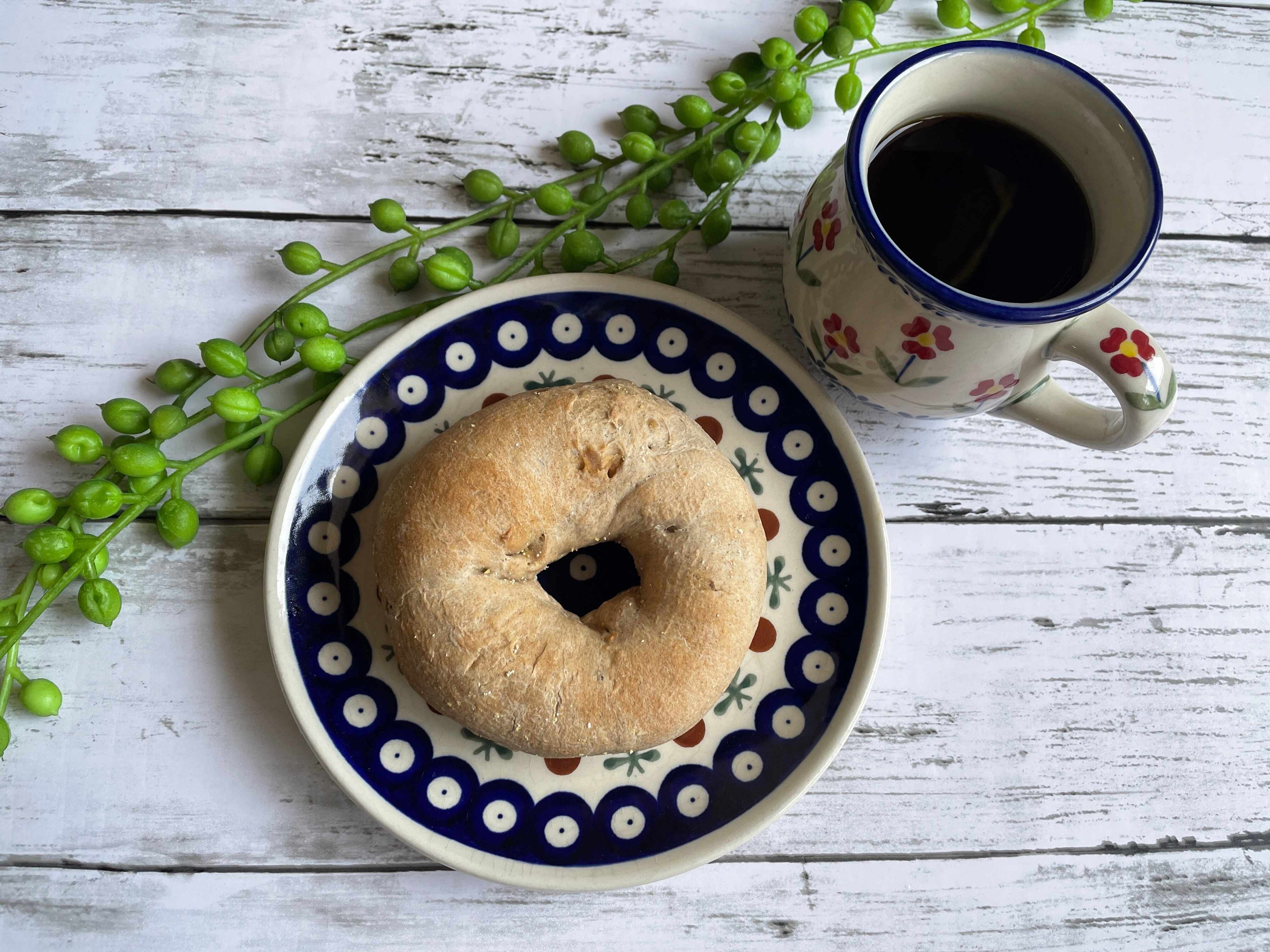 普通のベーグルとコーヒーですが、なんだかオシャレな感じになりましたよね?ダイソーの合わせ技が効いていますね~。