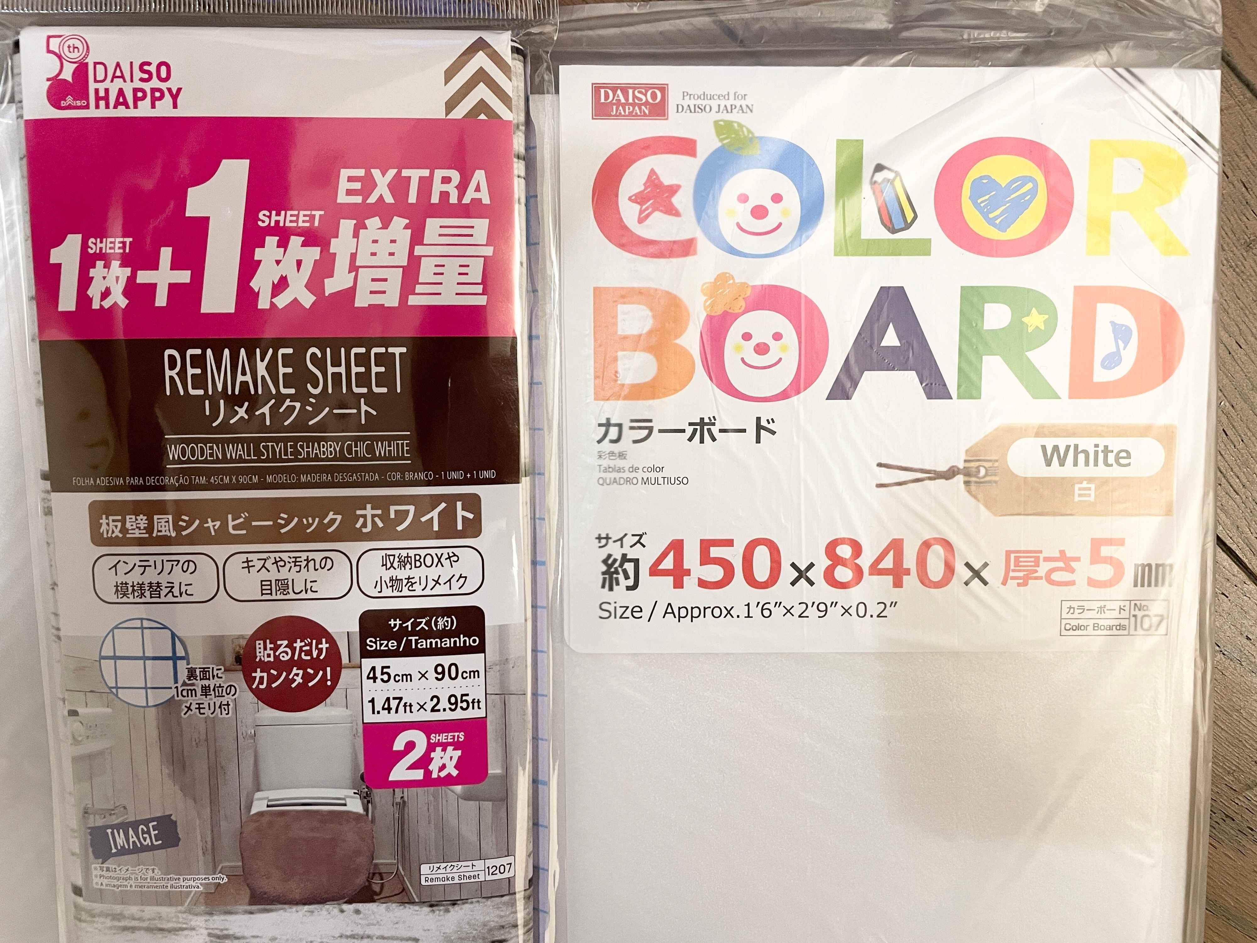 今回使用したのは、ダイソーの「リメイクシート」と、「カラーボード」です。価格はそれぞれ110円ですよ。