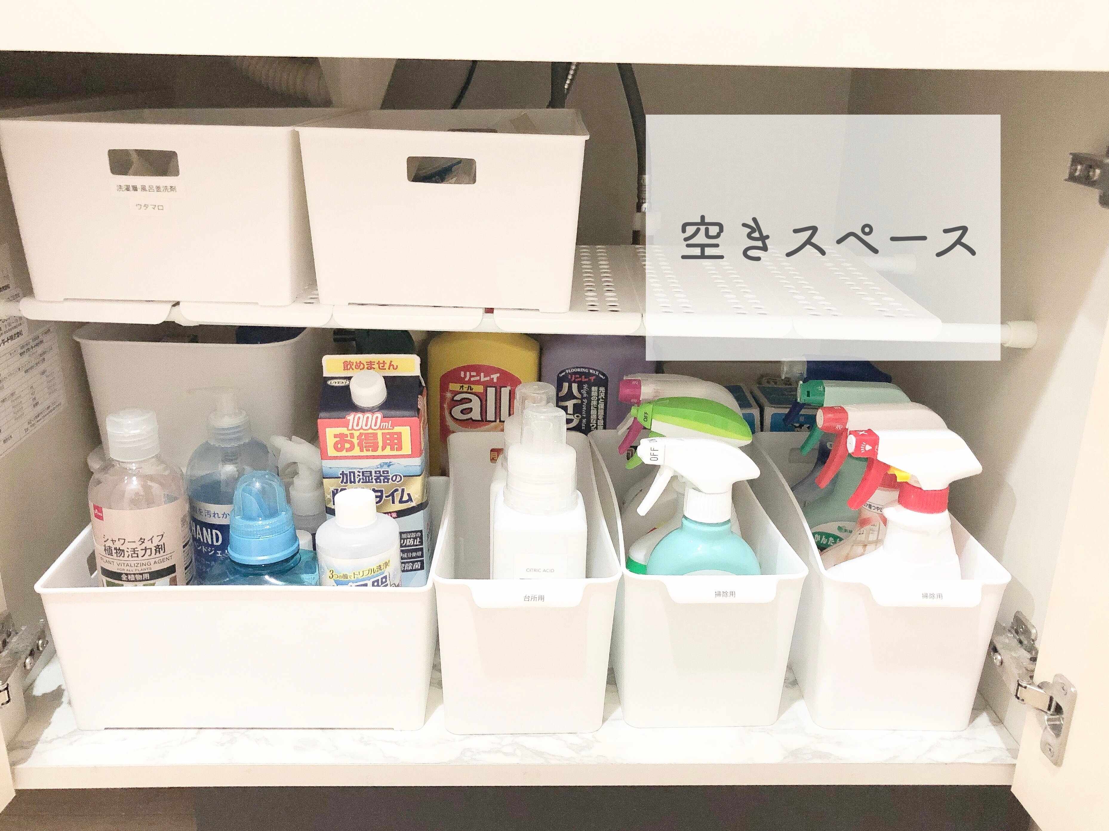 ついゴチャゴチャしがちな洗面台下の収納場所。