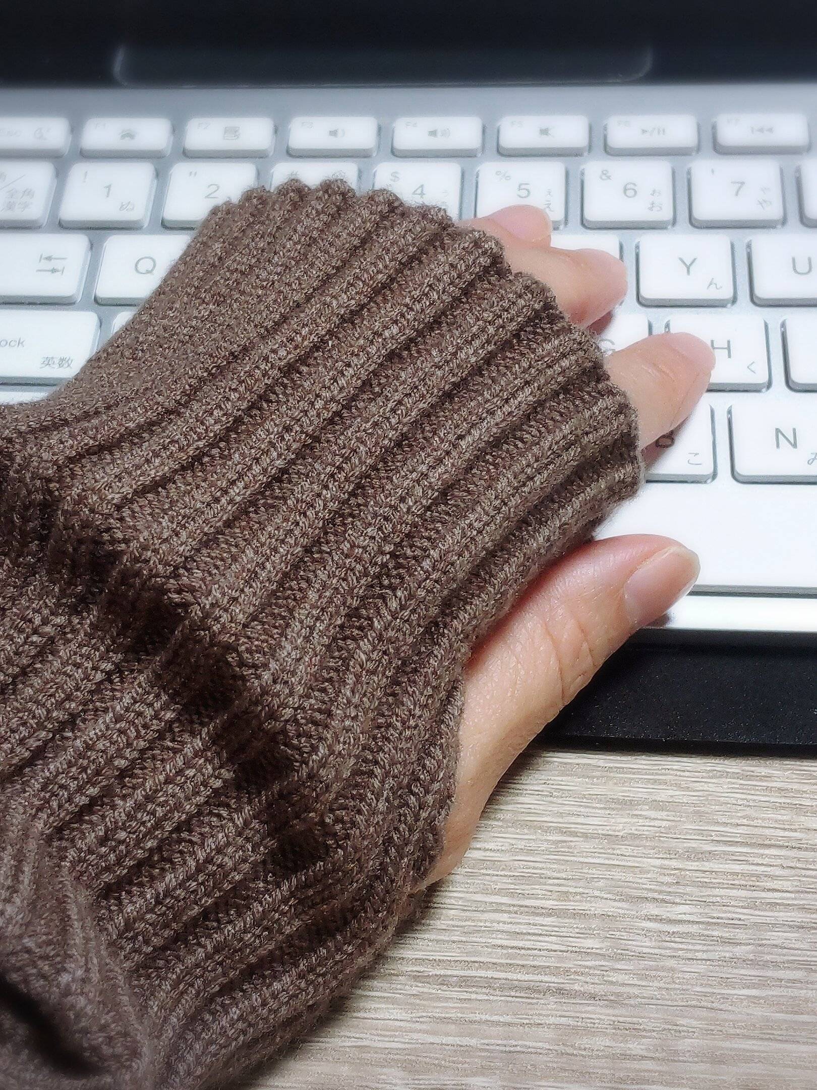 デスクワークや家事の時にもつけっぱなしで作業できるので、手袋よりも重宝しています。