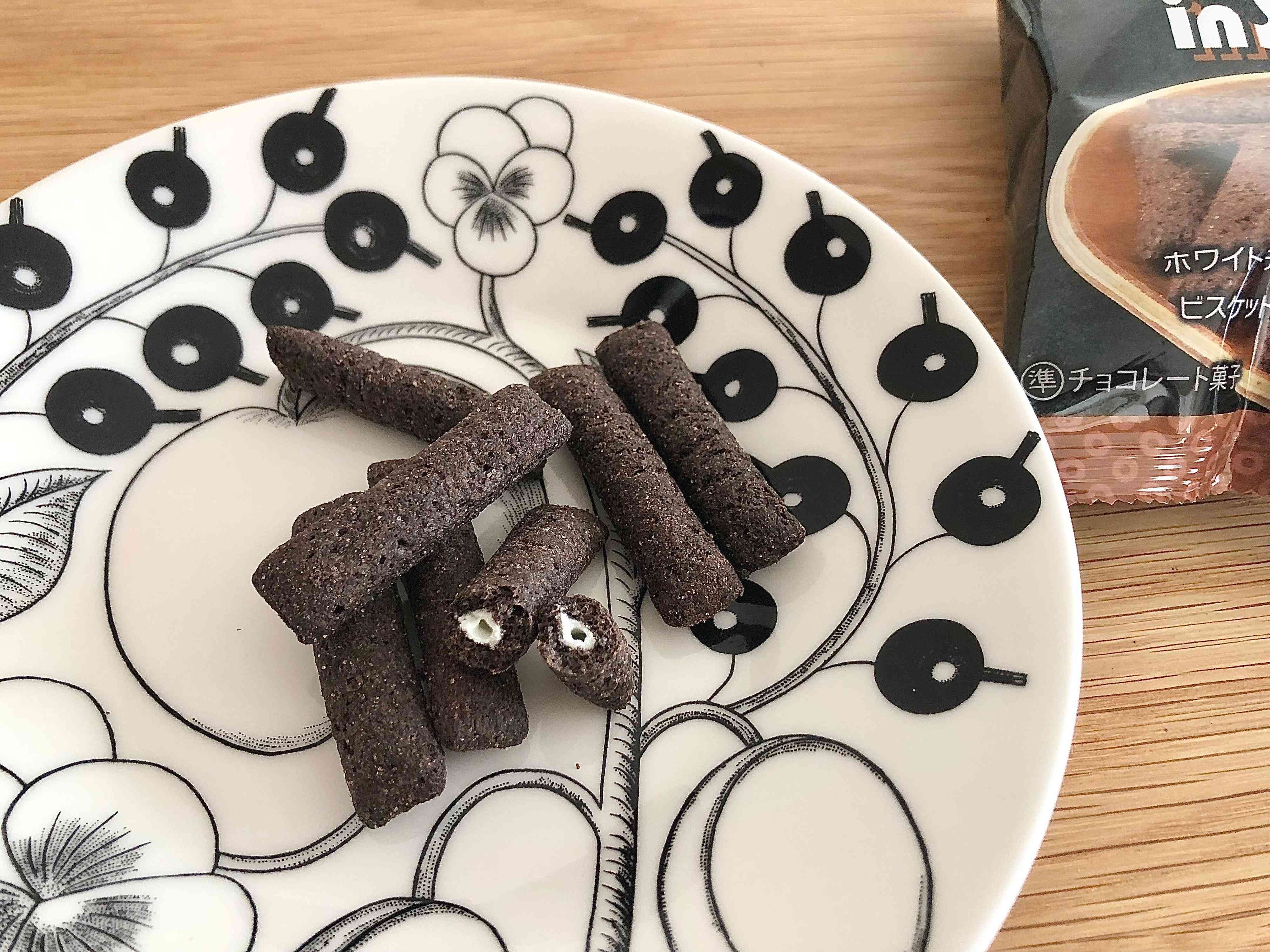 ココアパウダーが練り込まれたビスケット生地に、ホワイトチョコレートのクリームが入っていました。