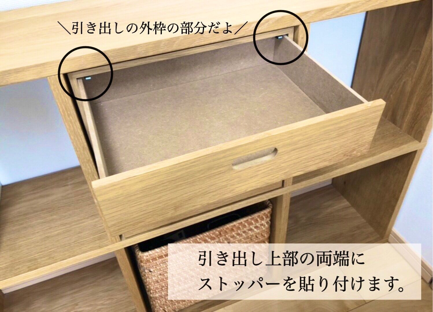 引き出しを閉めたらストッパーは見えないので、見た目もバッチリです!