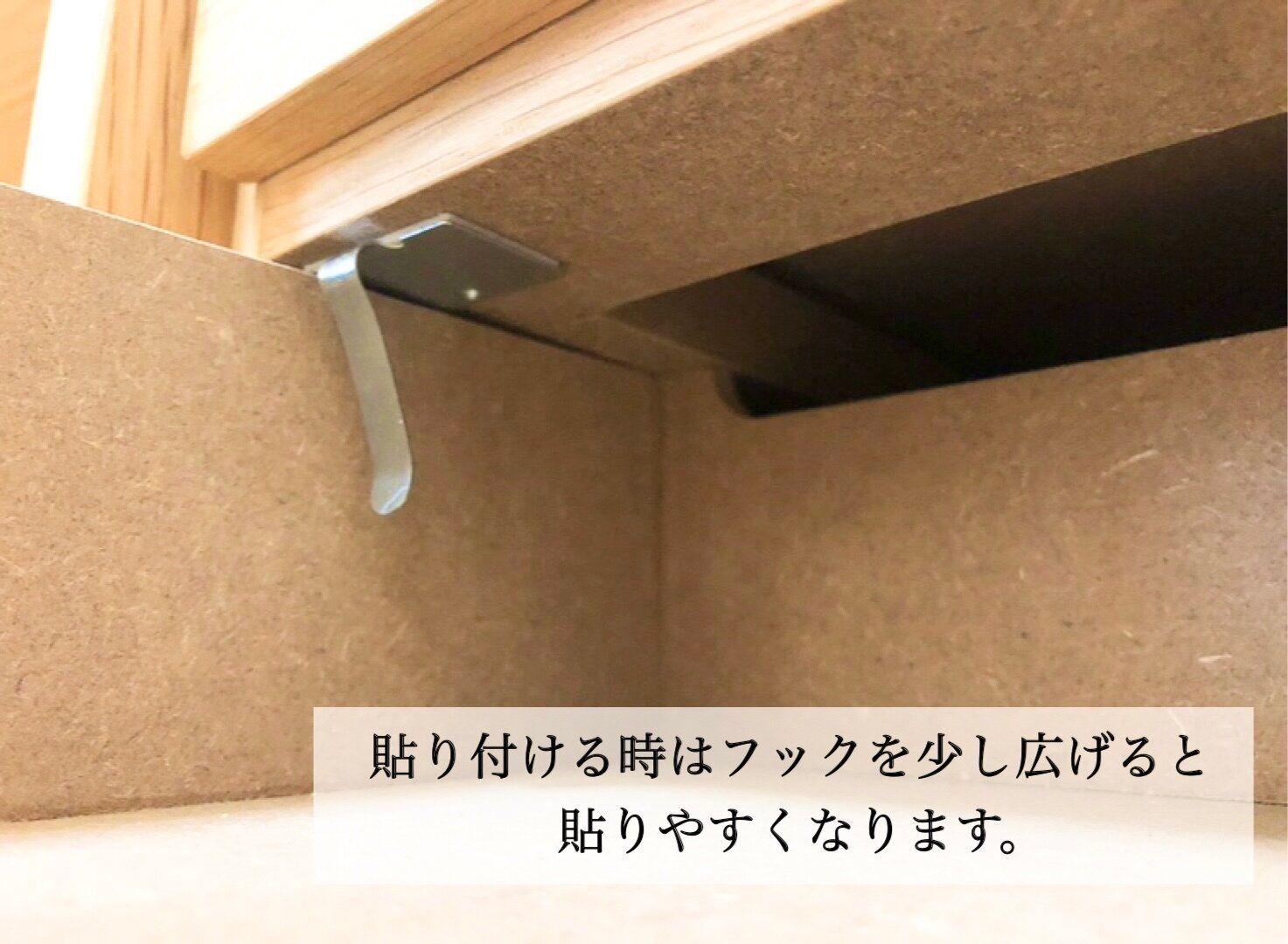 因みに貼り付ける時は、フックを少し広げると持ちやすくなるので、貼り付けやすくなります。