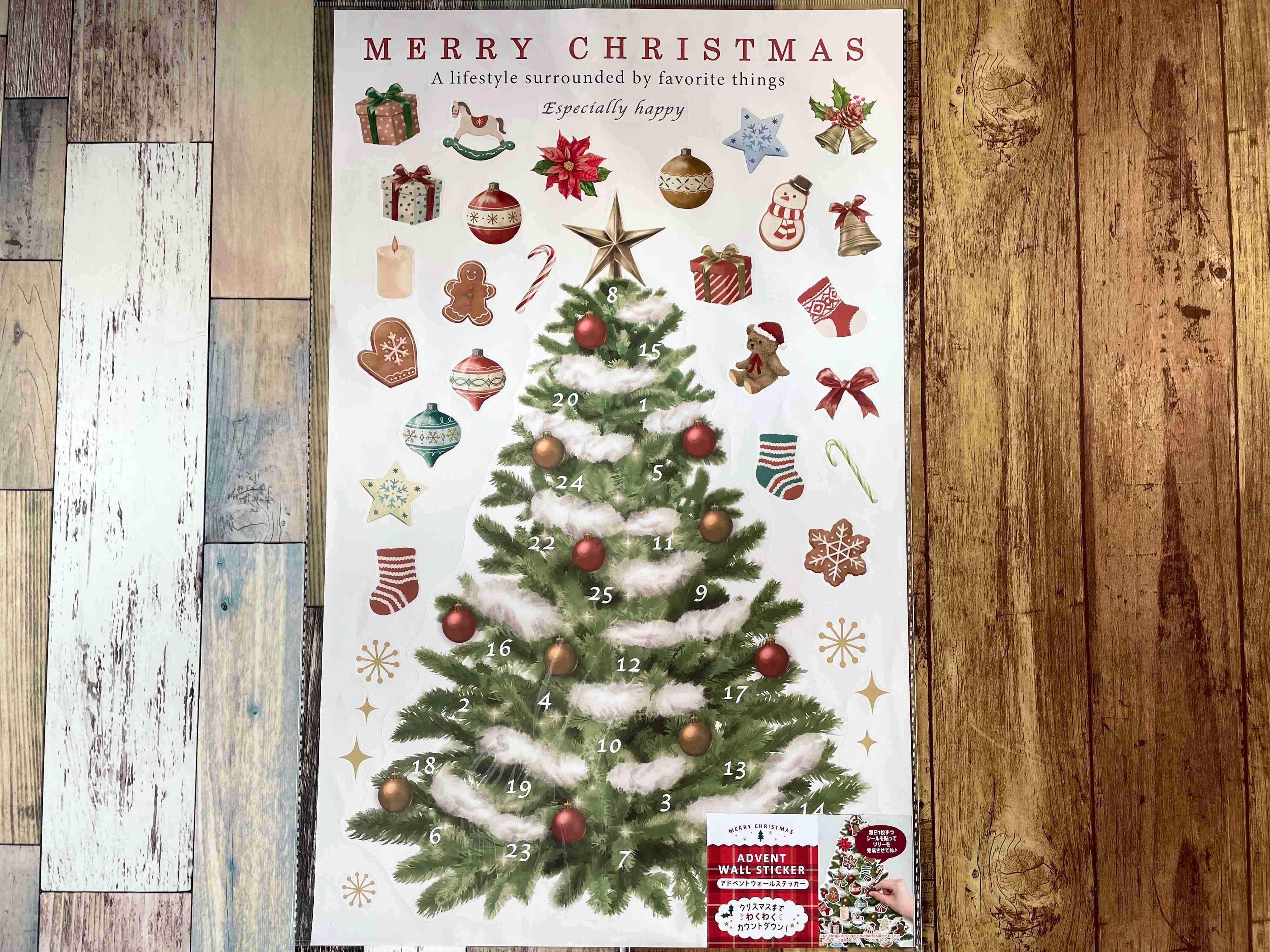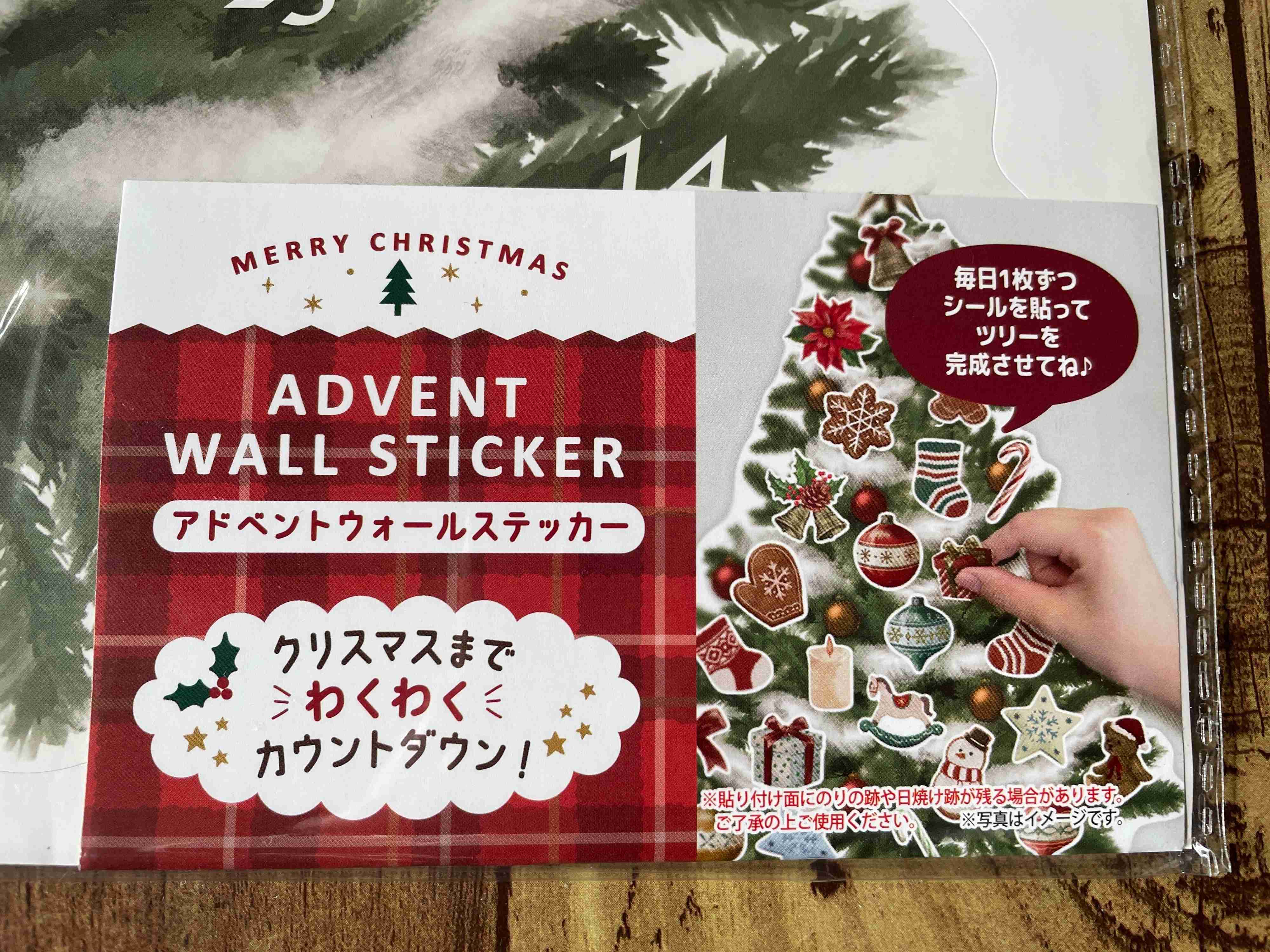 毎日お菓子を取り出して楽しむアドベントカレンダーはよく見ますが、ステッカータイプは珍しい感じですね。