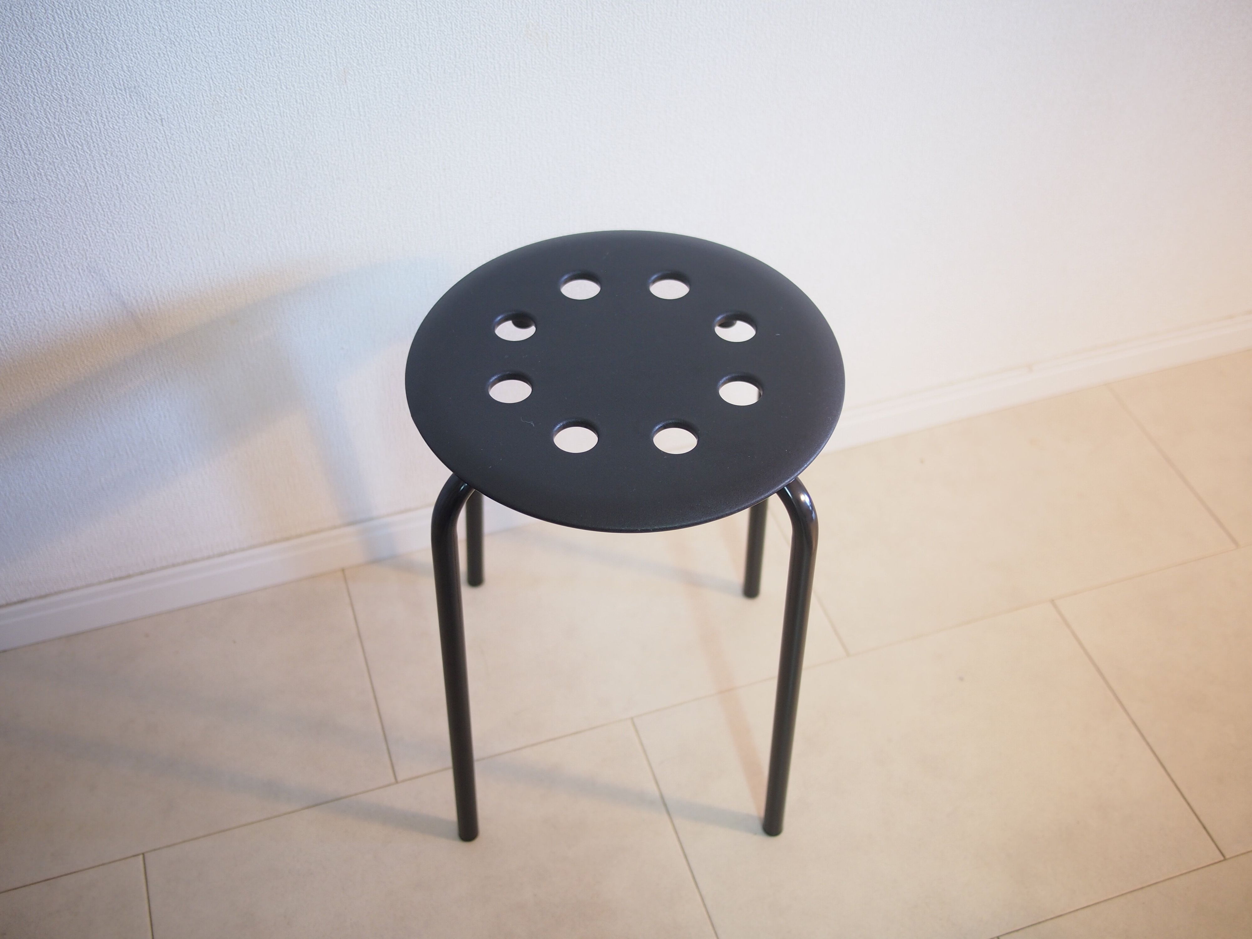 来客時等でイスが足りなくなった際やバックの一時置き場など何かと使える丸椅子。