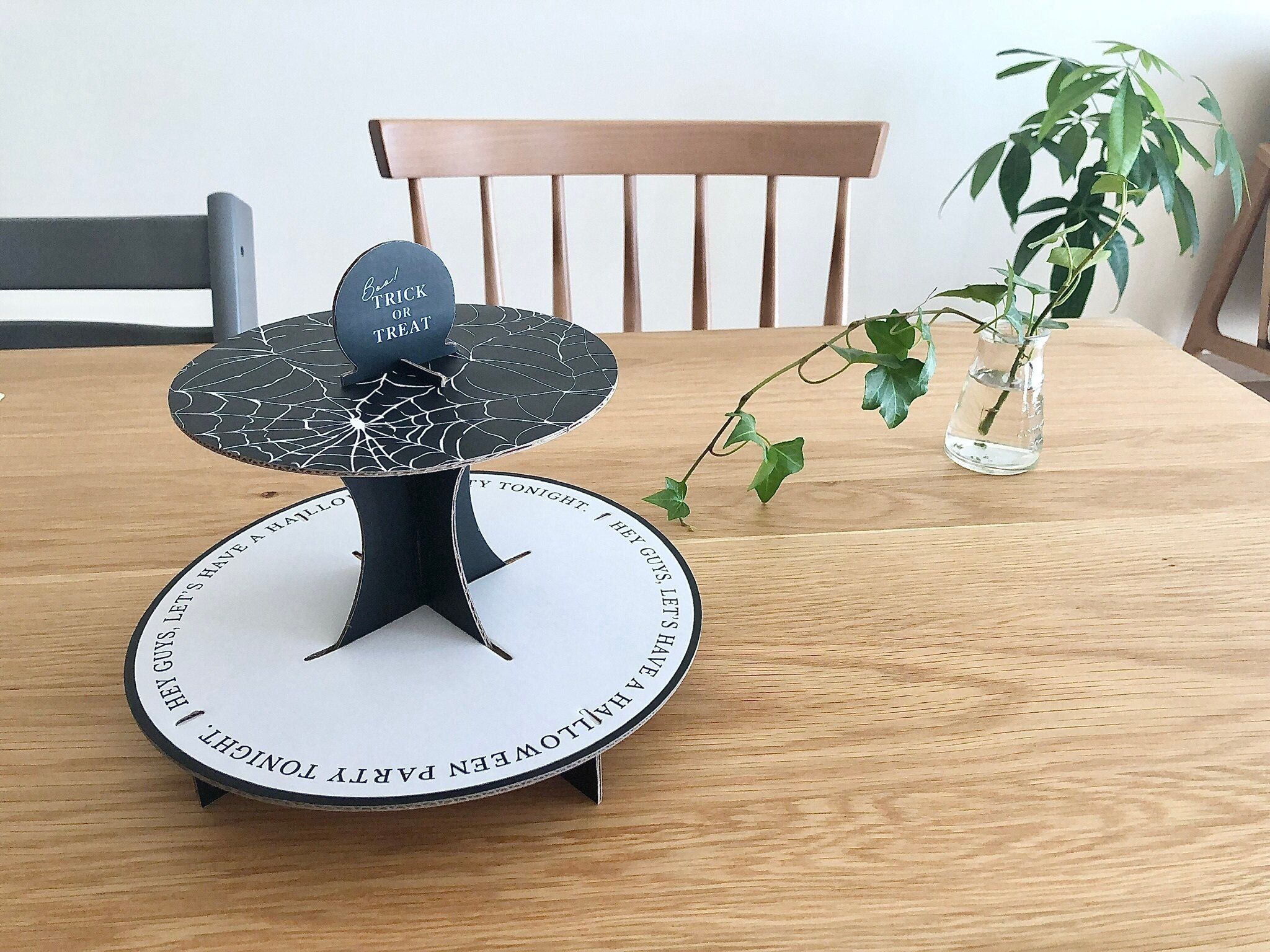 ハロウィン雑貨やお菓子などを並べると、テーブルコーデを華やかにしてくれます。