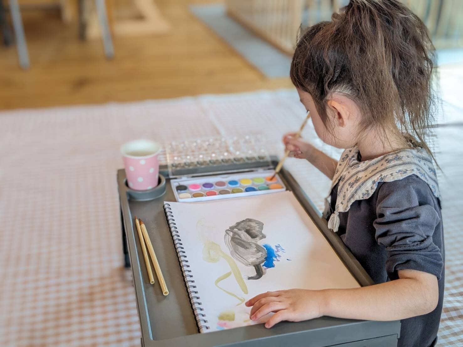 発色こそ一般的な絵の具に劣りますが、パレットやバケツなしで遊べる手軽さを考えれば、おうち遊びには十分なクオリティー! 絵の具に強い憧れを抱く保育園児はもちろん、小学生の長女も楽しんでいます。