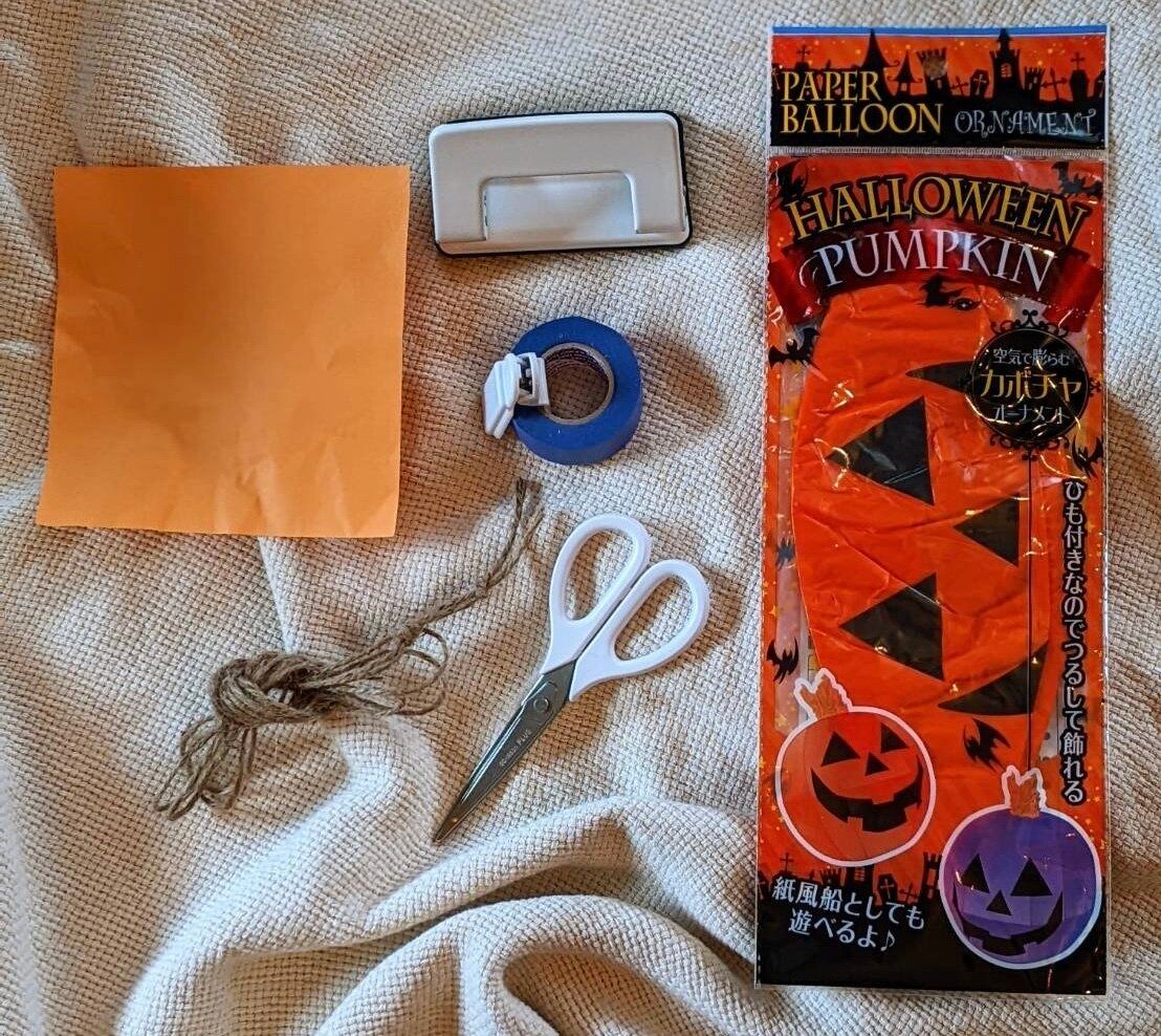 紙風船以外に必要な材料は、テープや紐など家の中にあるモノばかり。