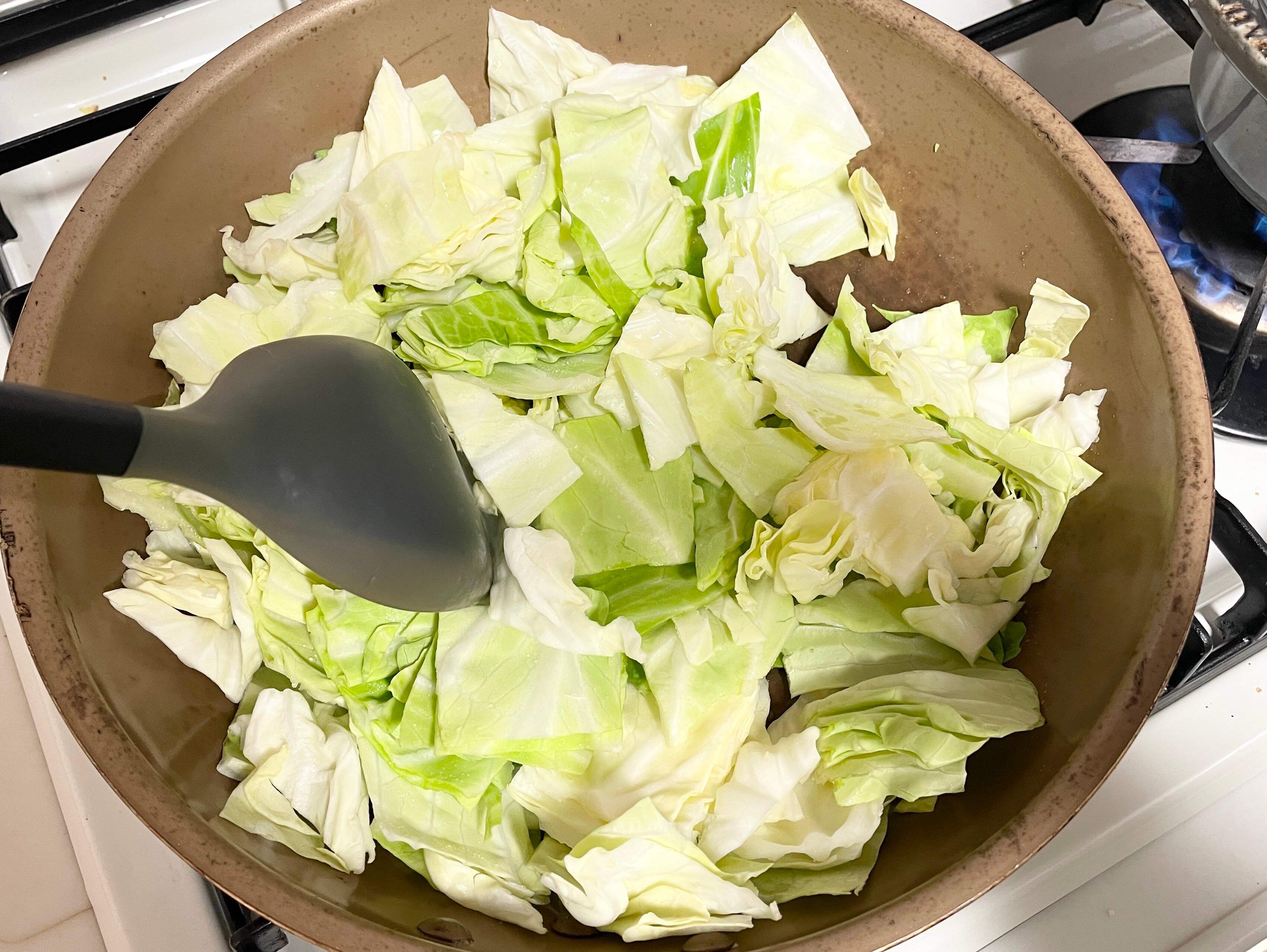 キャベツを一旦取り出すのがミソですね。キャベツから水分が出て水っぽくなるのが防げます。
