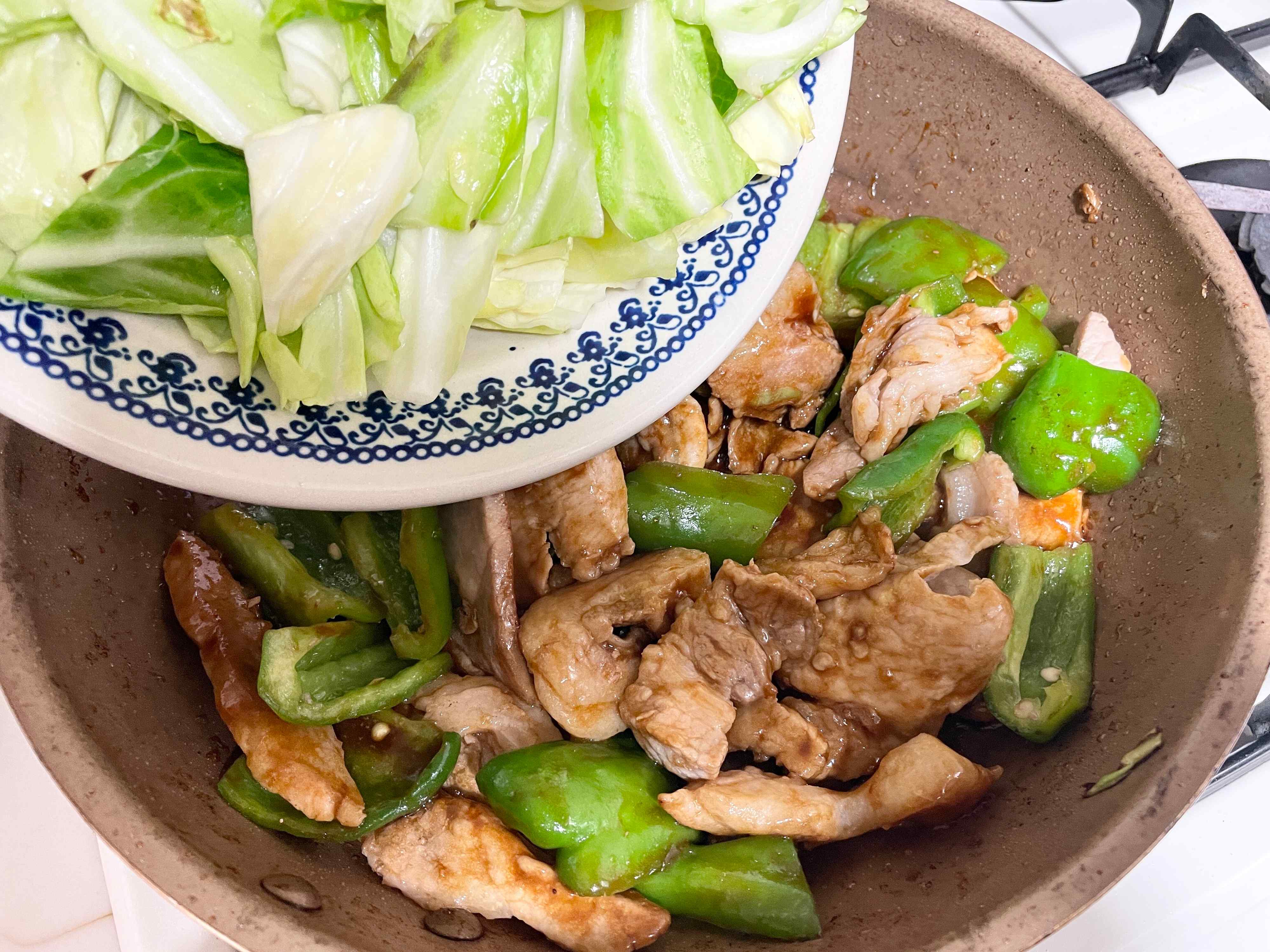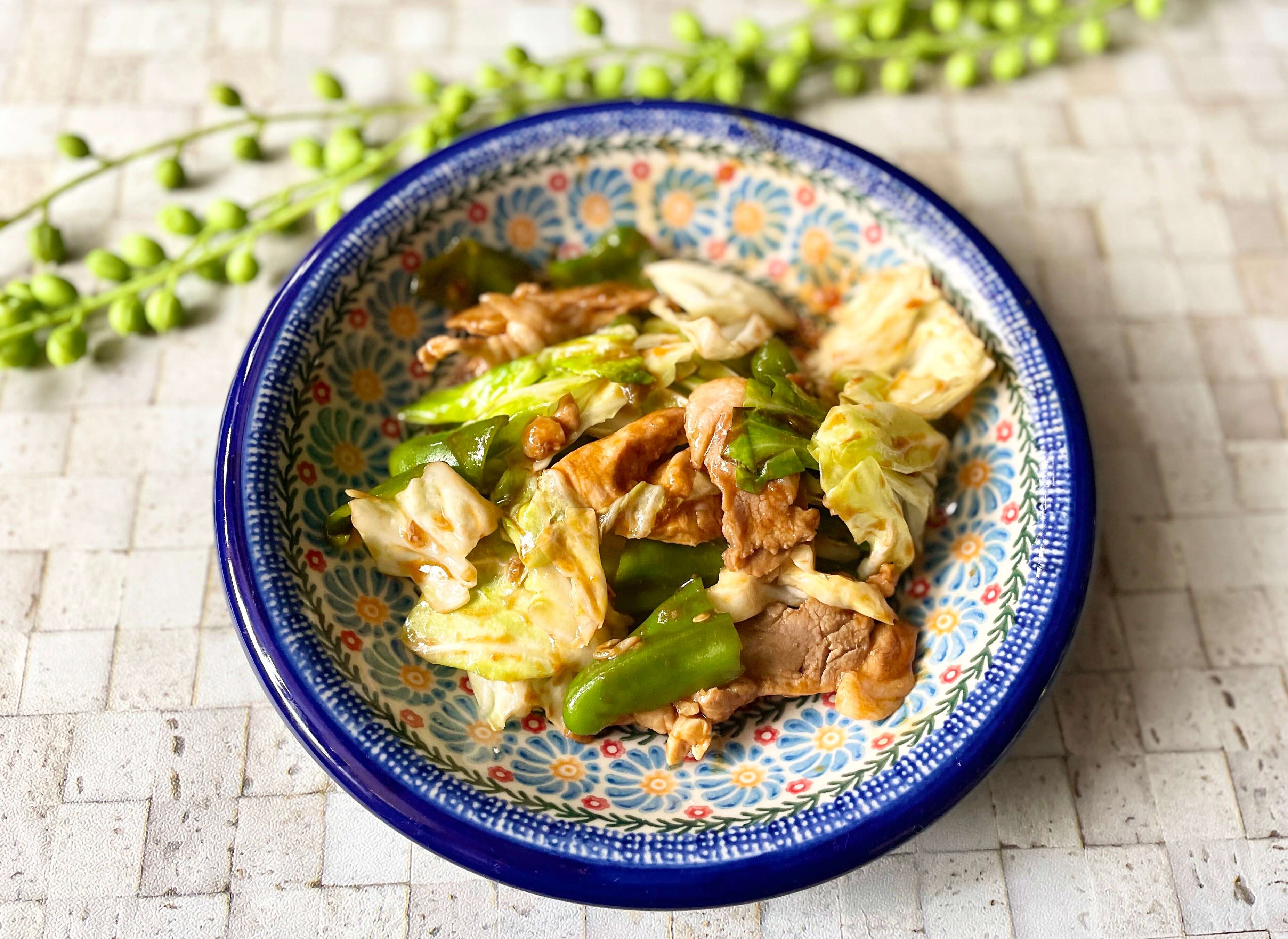 長ネギはありませんでしたが、ピーマンがあったので、キャベツと豚肉、ピーマンでつくることにしました。