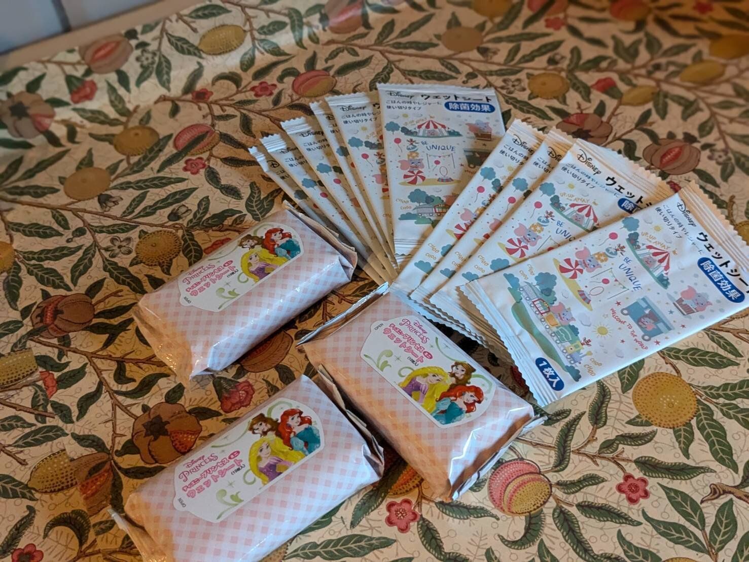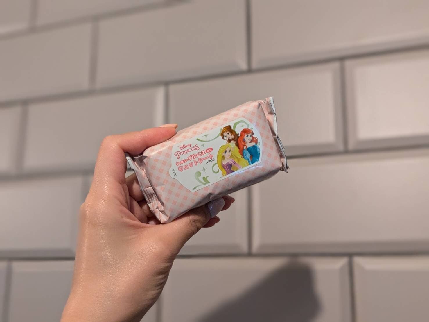 まず紹介したいのが、『ディズニープリンセス ミニウェットシート』(110円)。10枚入り3個セットで販売されており、1つ購入すれば1ヶ月は持つコスパ抜群の商品です。1個あたりは10枚と入り数が少ないため、真夏の暑い時期でもシートが乾きにくいのもうれしいですね。