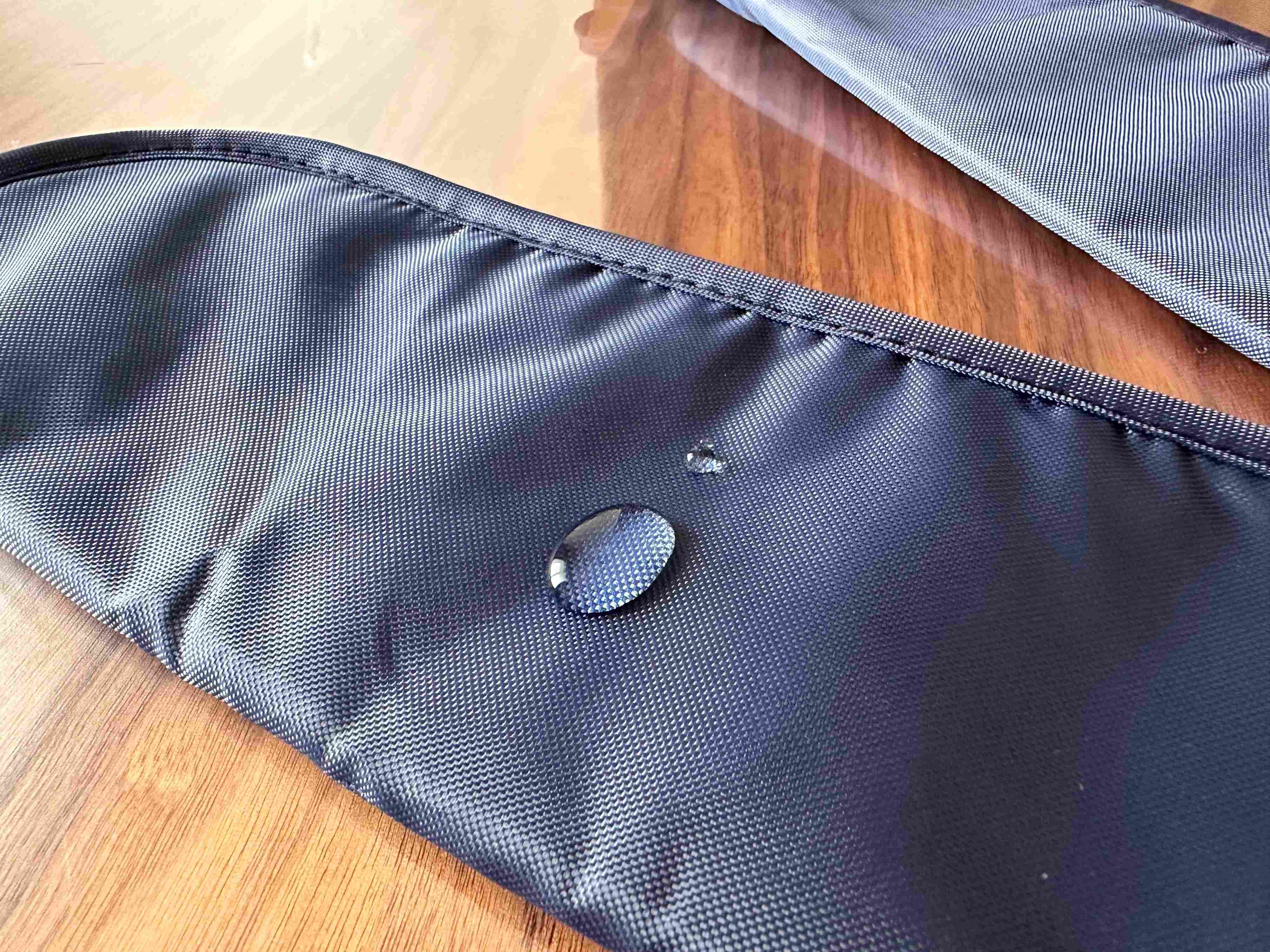さらに外側ははっ水加工をされているので、水をしっかりと弾いてくれて、吸収した水分が滲み出ないようになっています。バッグの中でヒヤッとすることがなくなり安心です。(注意書きに、濡れたまま長時間使用したり、放置しないようにしてください。とあるので、気をつける必要はあります。)