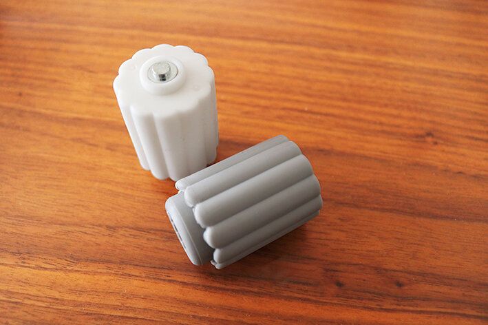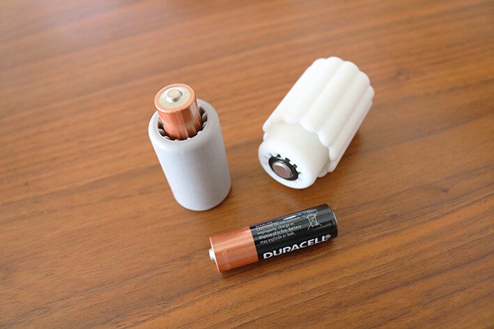 使い方は、単3電池をアダプタに差し込むだけ。ぷにっとやわらかいので、割れにくそうです。