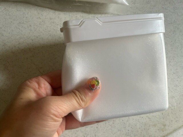これまで使ったことがある容器は下は固いプラスチックなのでこんな風に押せるタイプは初めてです。