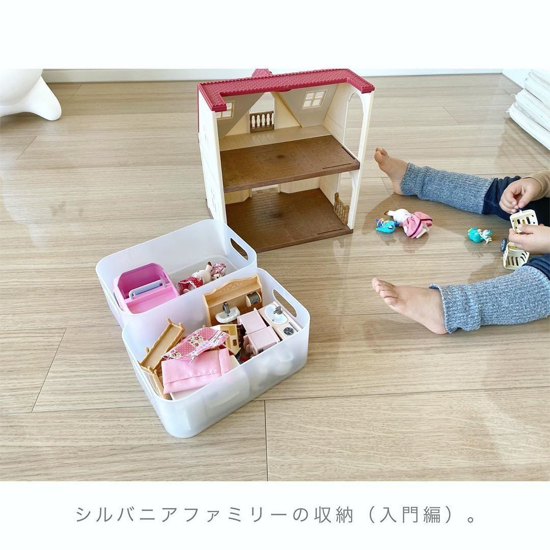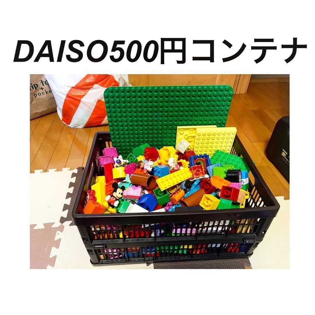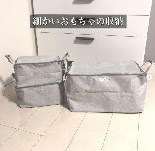 こまかいおもちゃは片づけるのも大変。でも、収納ボックスにまとめてしまえば片づけも簡単。ダイソーには小さいサイズや大きいサイズのソフトボックスがあるので、おもちゃの量に合わせて選ぶことができますね。